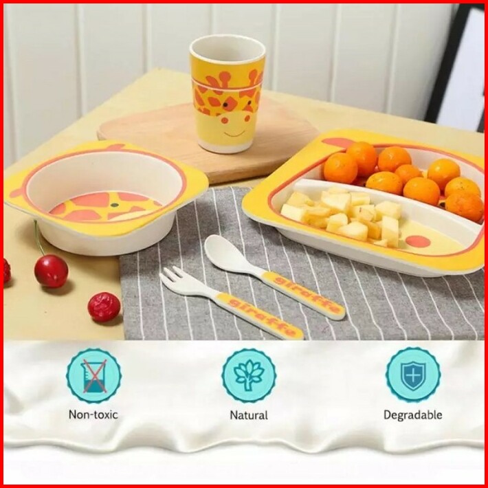 Peralatan Makan Anak Set 5in1 - Bamboo Fibre Kids Tableware Set 5pcs