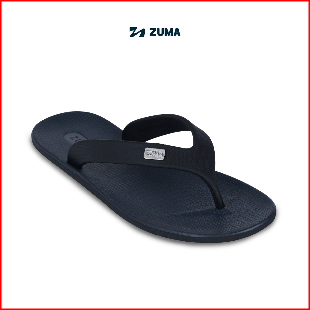 Zuma Men Onyx 9 Black Navy Sandal Jepit Pria Karet Polos Hitam Biru Tua