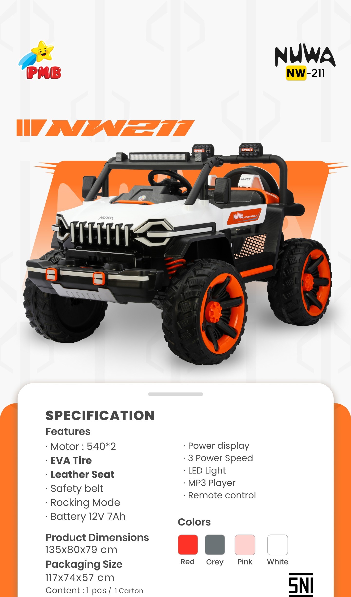 MOBILAN ANAK MOBIL AKI NUWA NW211 NW 211 BAN EVA ROCKING MODE REMOTE CONTROL PMB TOYS