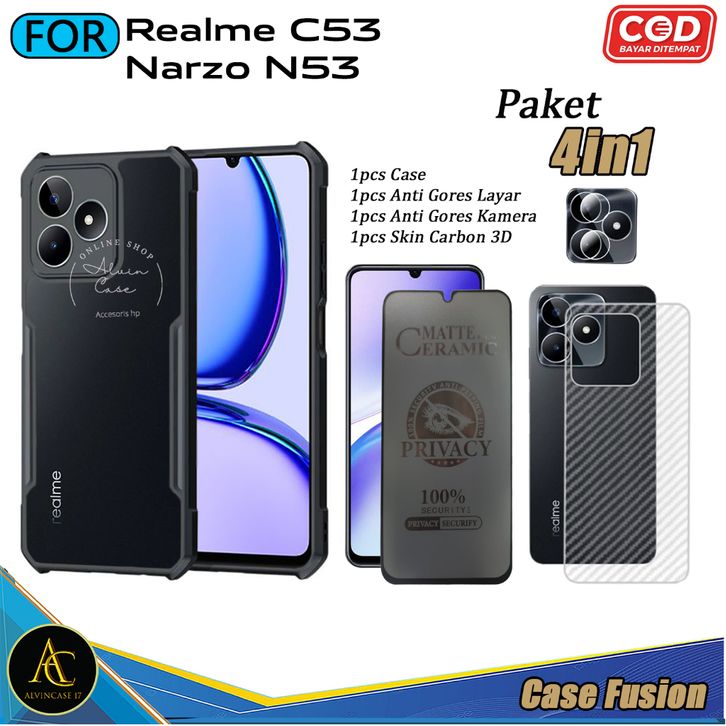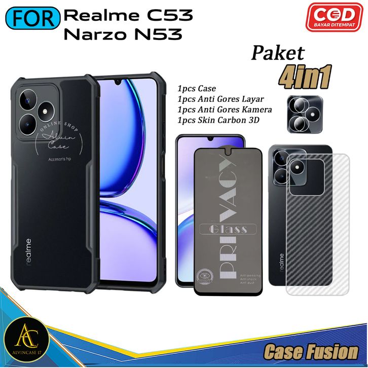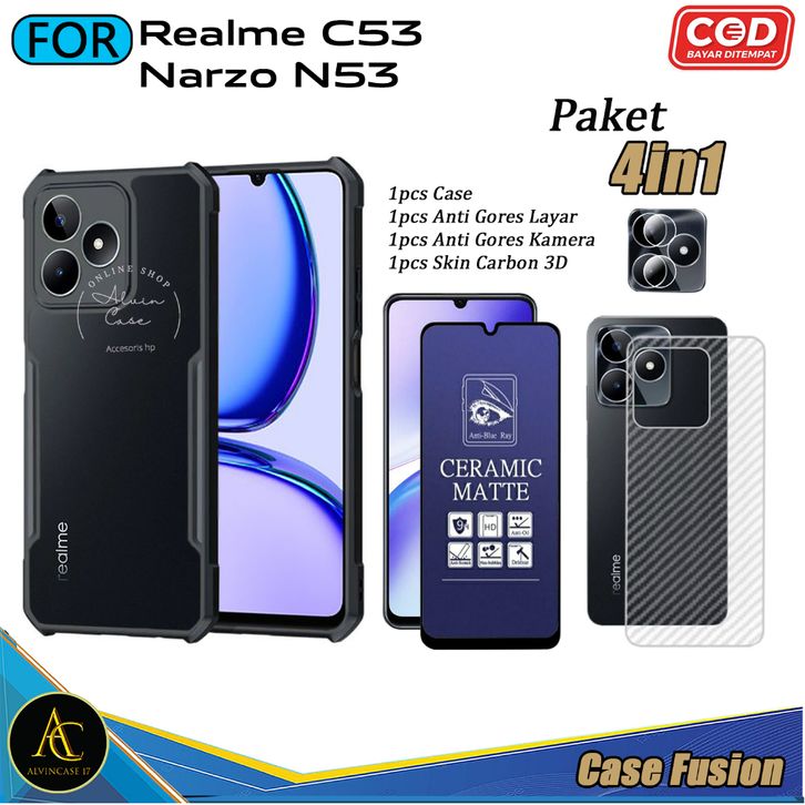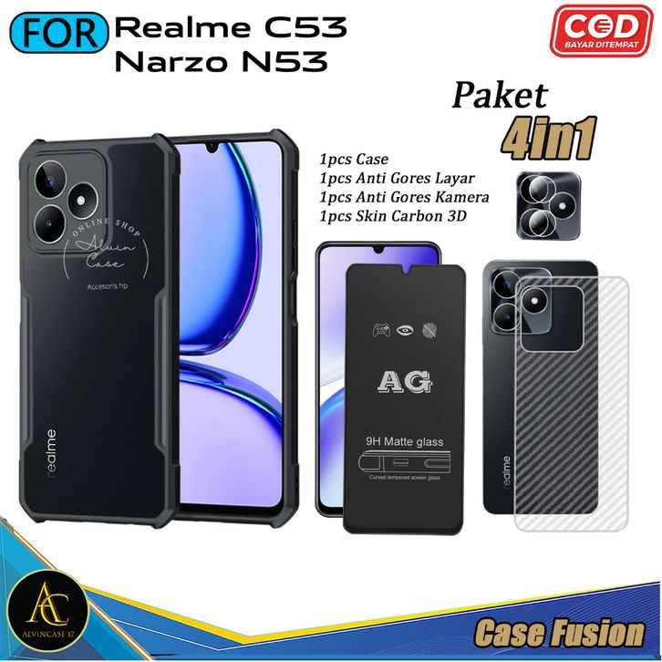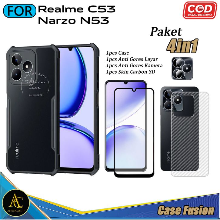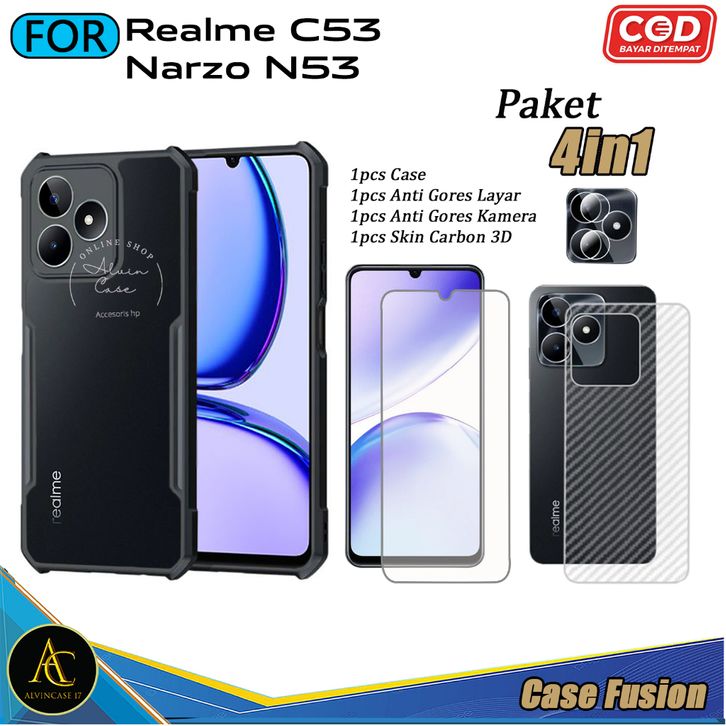 (TERLARIS)Paket 4in1 Case Fusion Realme C53 Narzo N53 Softcase Shockproof Transparan Casing