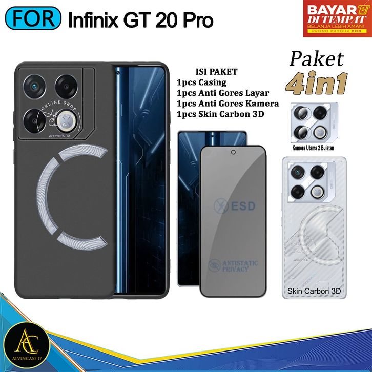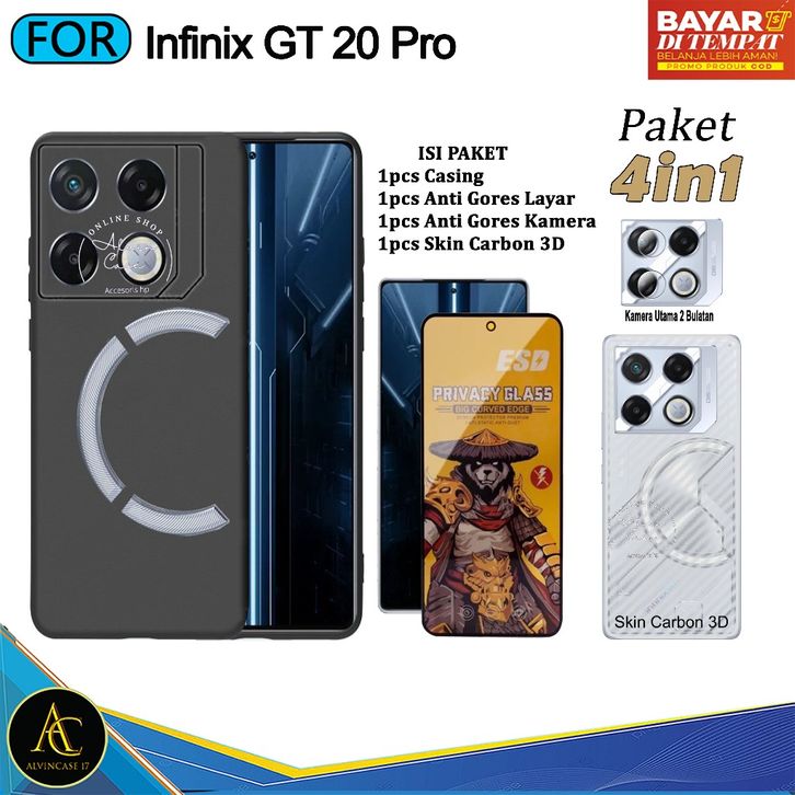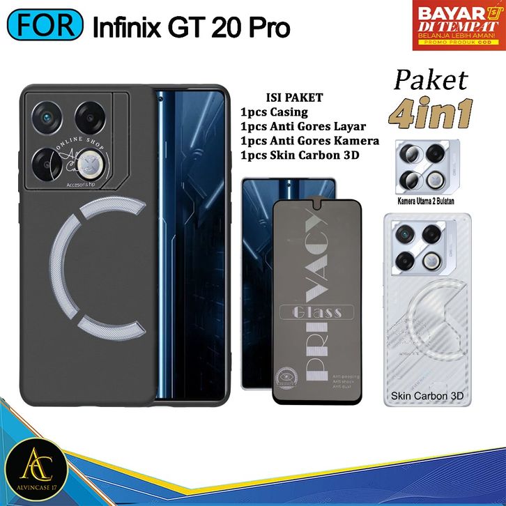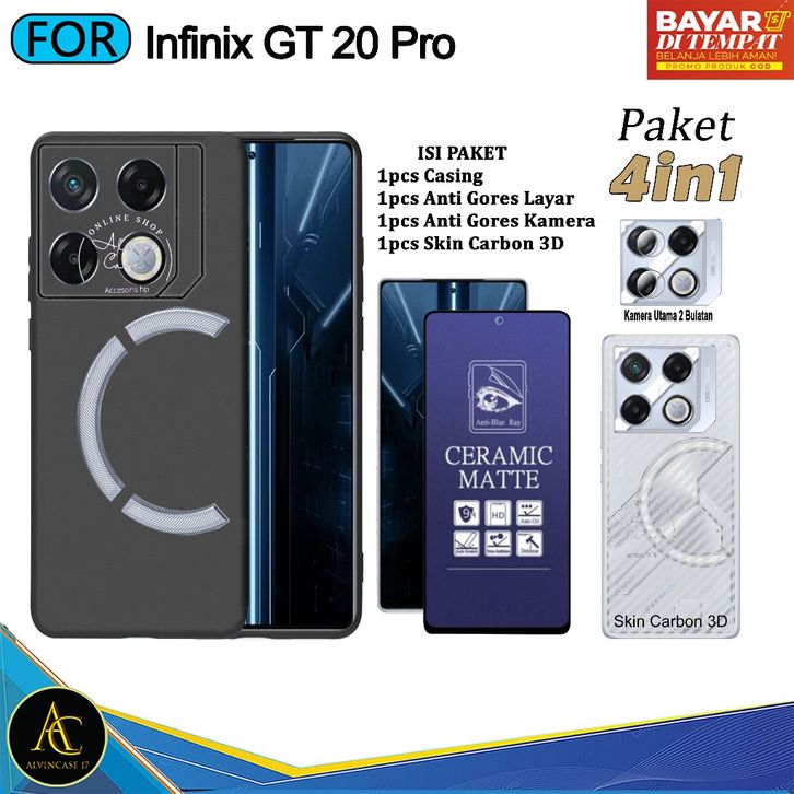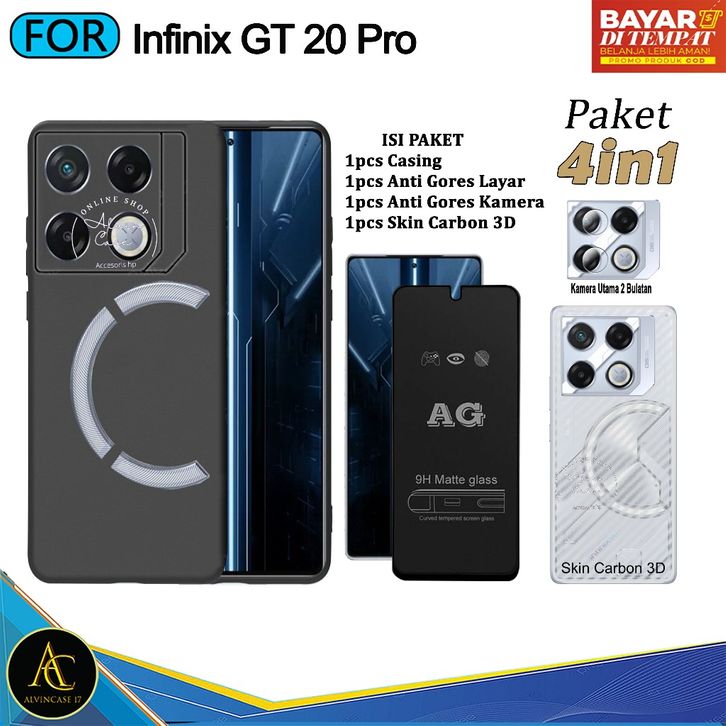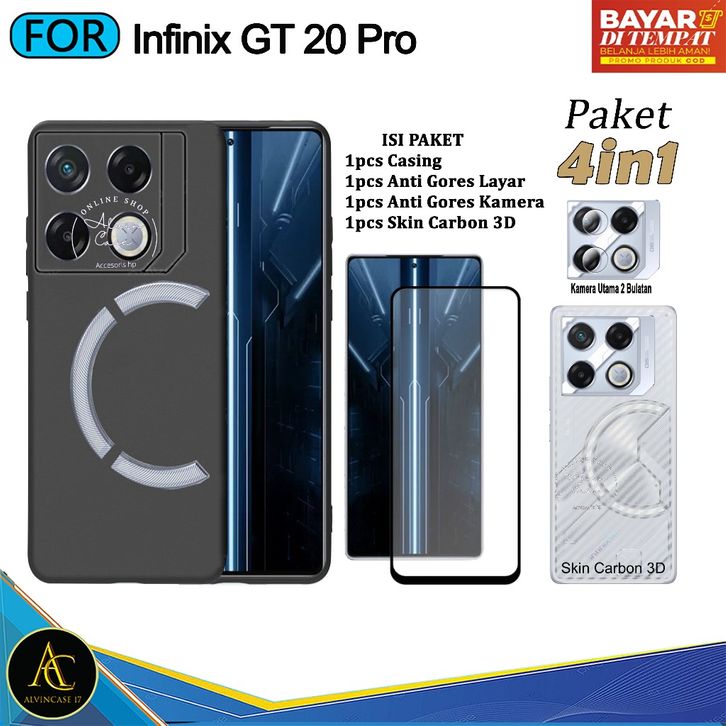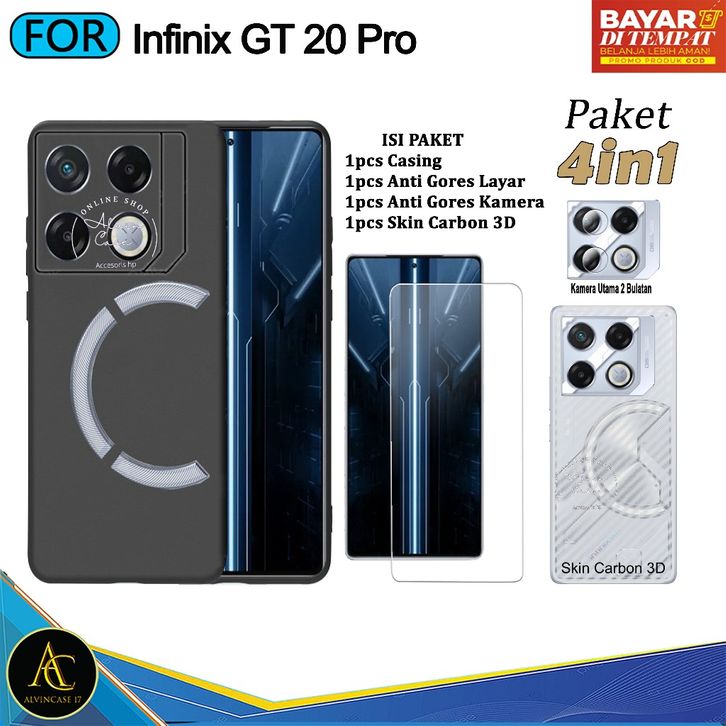(TERLARIS)Paket 4in1 Case Infinix Gt 20 Pro Soft case Black Protect Casing