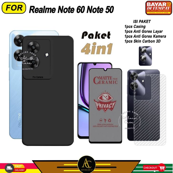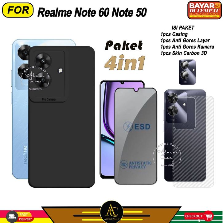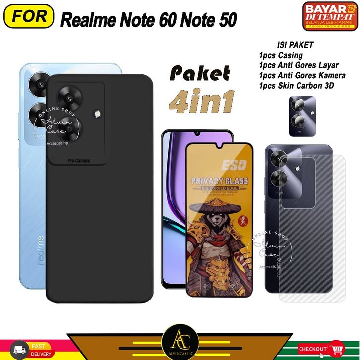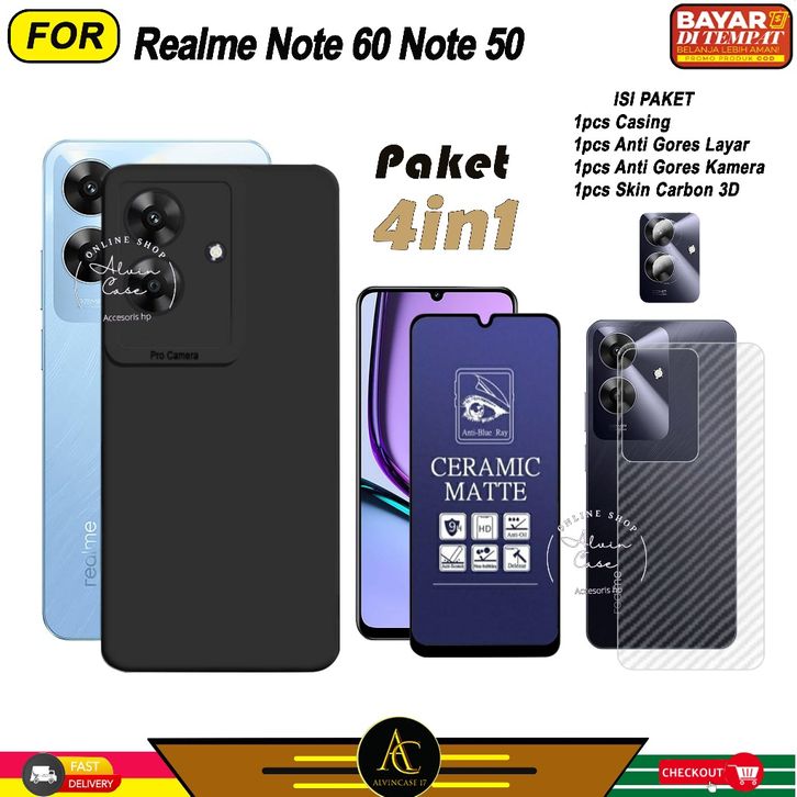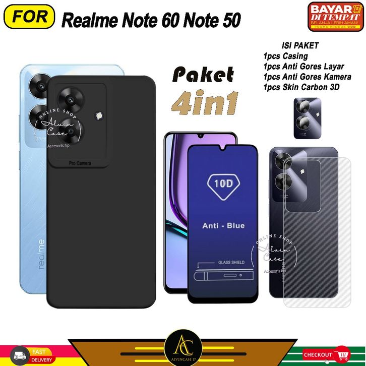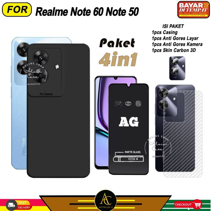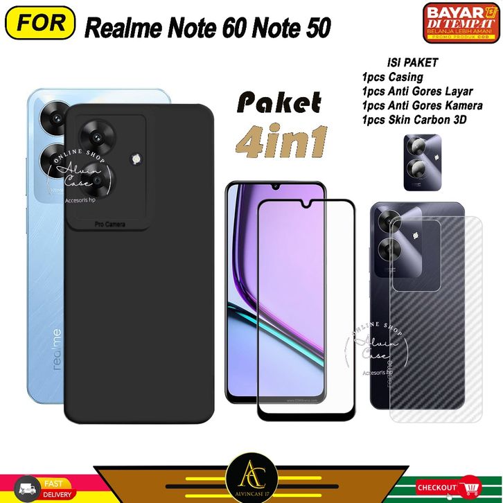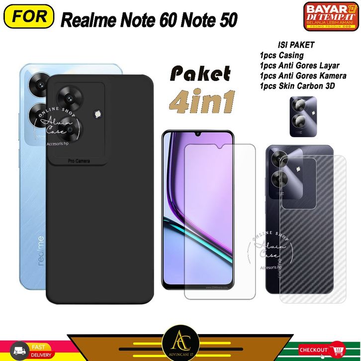 (TERLARIS)Paket 4in1 Case Realme Note 60 Note 50 Softcase Black Protect Casing