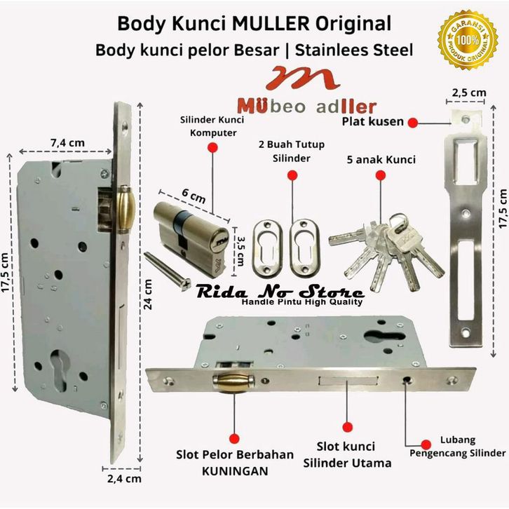 Body Kunci Pellor Pintu Rumah Stainles Merk Muller Ukuran Besar