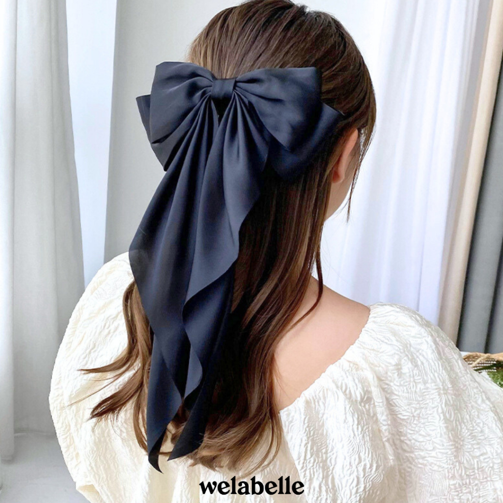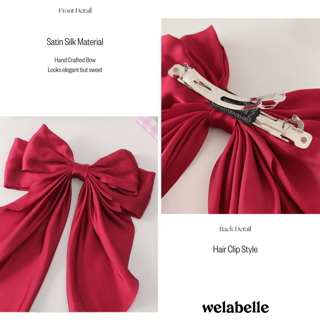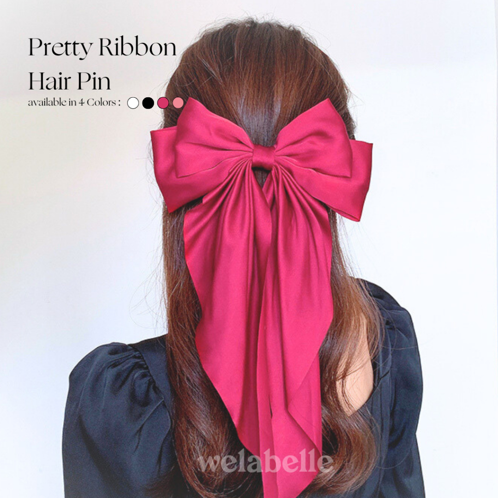 Welabelle Pretty Large Hair Pin Ribbon / Jepit Klip Pita Rambut Besar Silk Satin (A59)