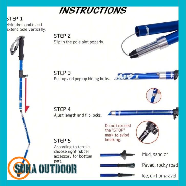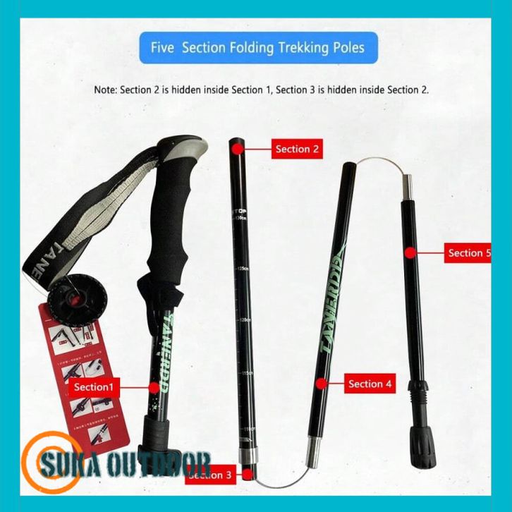 trekking pole lipat tongkat trekking Folding Hiking Stick tracking pole Trekking Stick Walking Poles