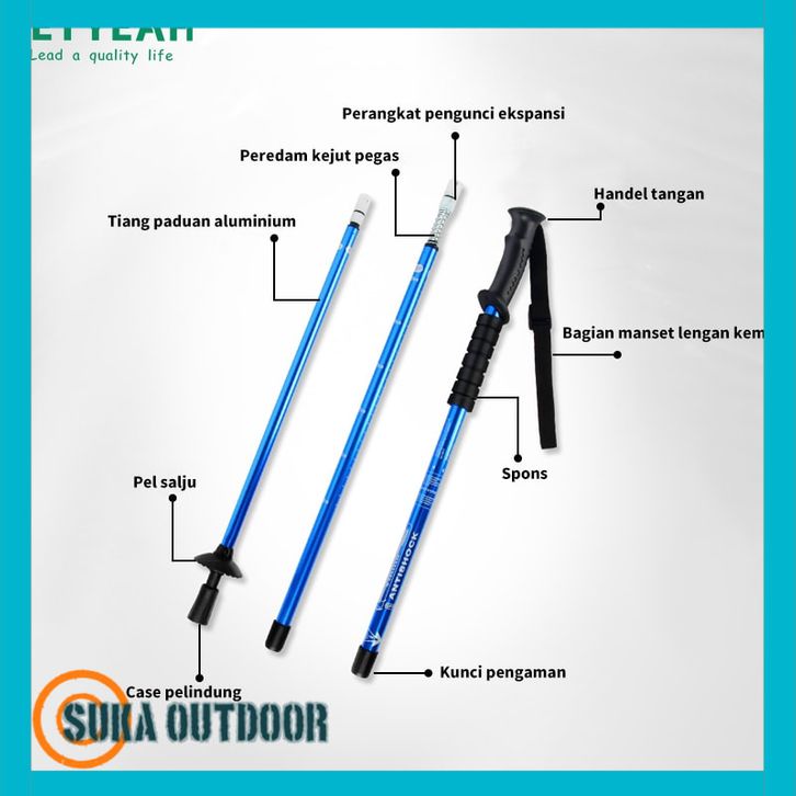 Trekking Pole Lipat Anti Karat 63 135cm Tongkat Gunung Tracking Dapat Diatur Sesuka Hati