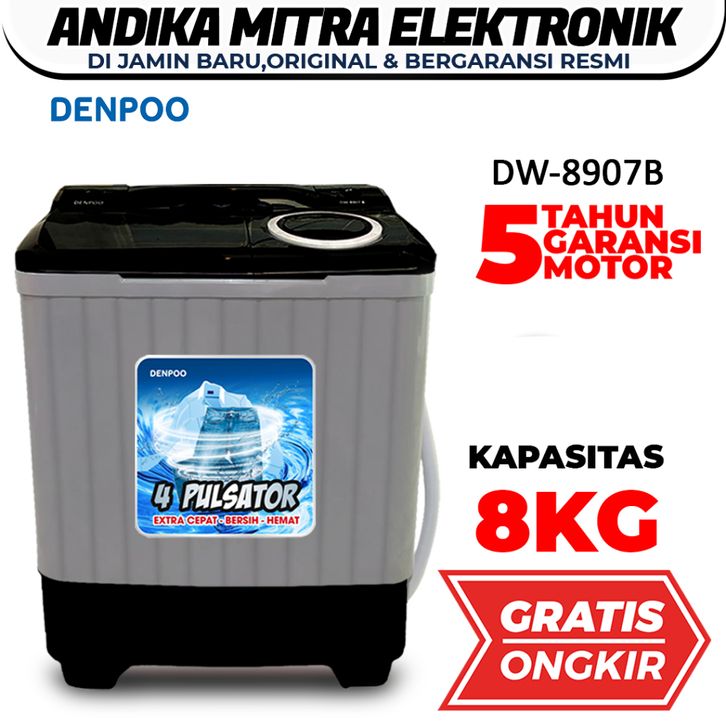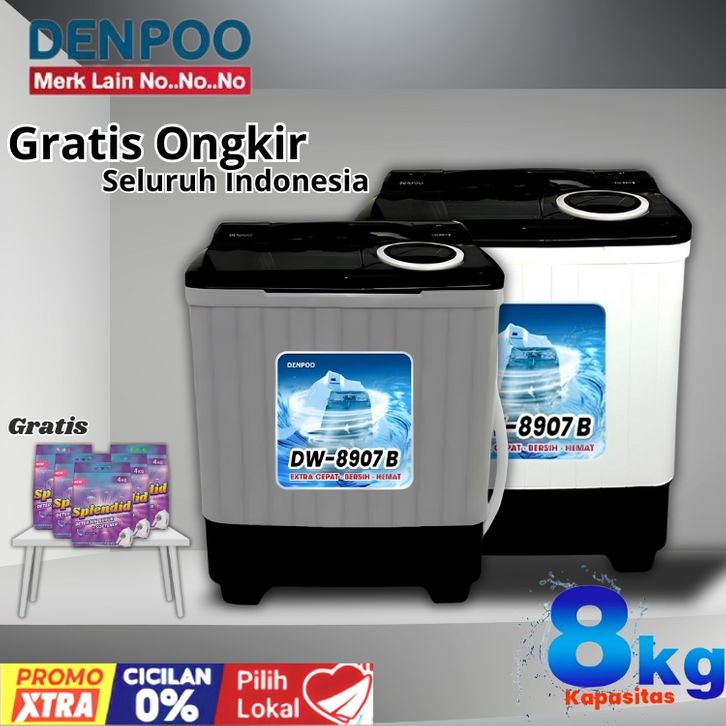 𝐆𝐫𝐚𝐭𝐢𝐬 𝐎𝐧𝐠𝐤𝐢𝐫 DENPO MESIN CUCI 2 TABUNG 8 KG NEW DW 8907B TURBO OFFICIAL STORE SHARP SANKEN SAMSUNG TANPA DP