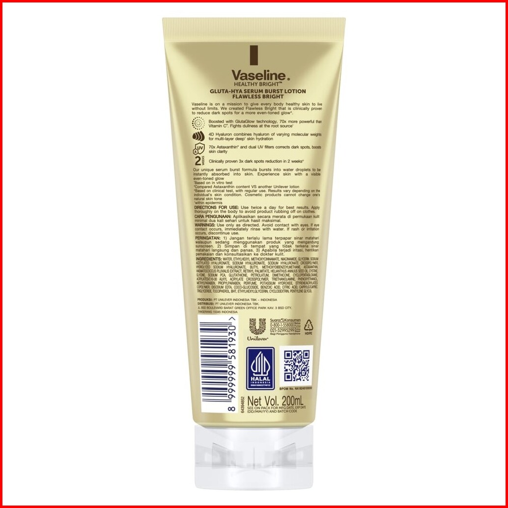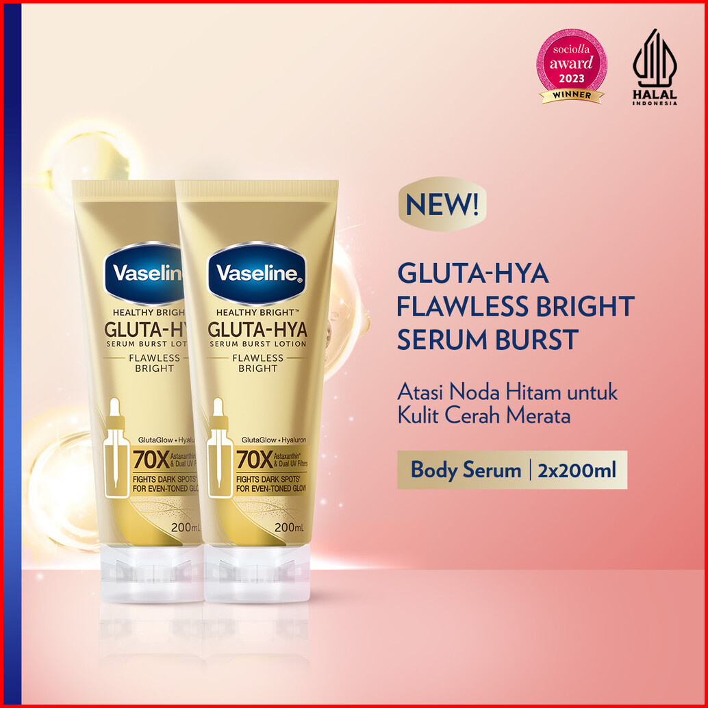 Vaseline Gluta-hya Body Serum Flawless Bright 200 Ml X2