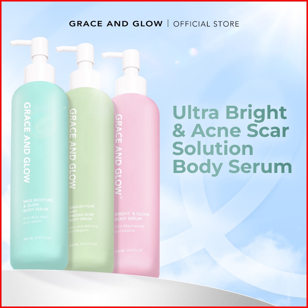 Bundle 3in1 Grace And Glow Body Serum Brightening Ultra Bright - English Pear Freesia Anti Acne Scar - Miss Moisture