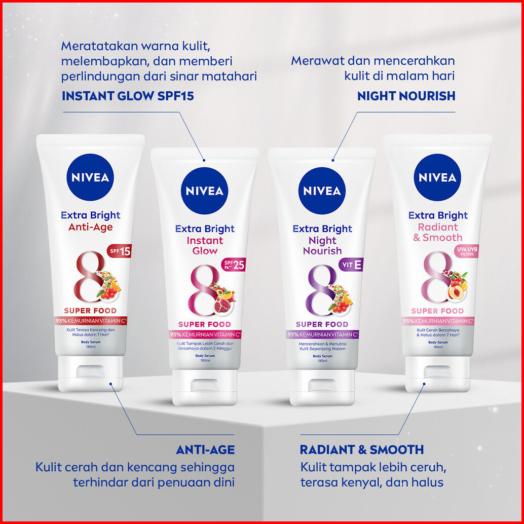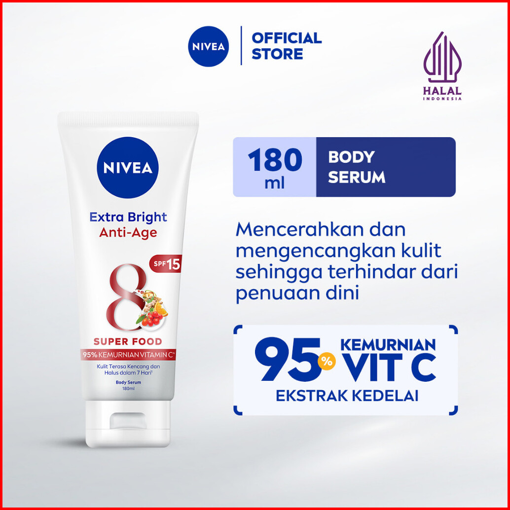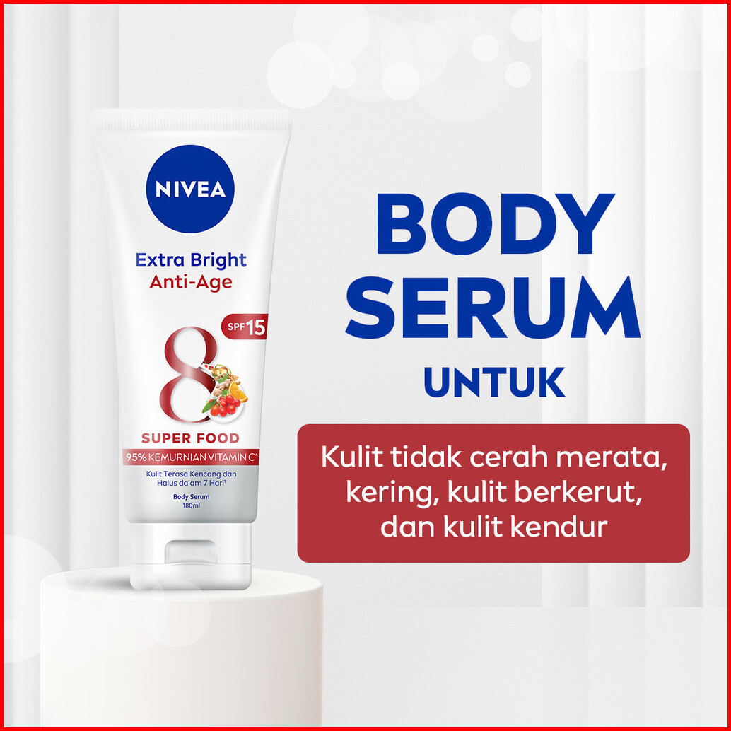 Nivea Body Serum Extra Bright Anti Age Spf 15 180ml - Hand Body Serum Lotion Moisturizer Mencerahkan Kulit Halus Lembut
