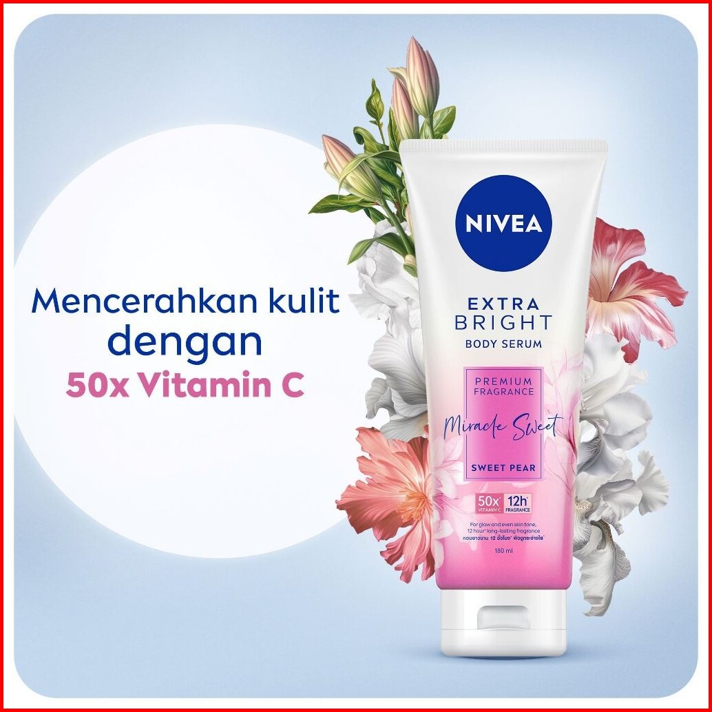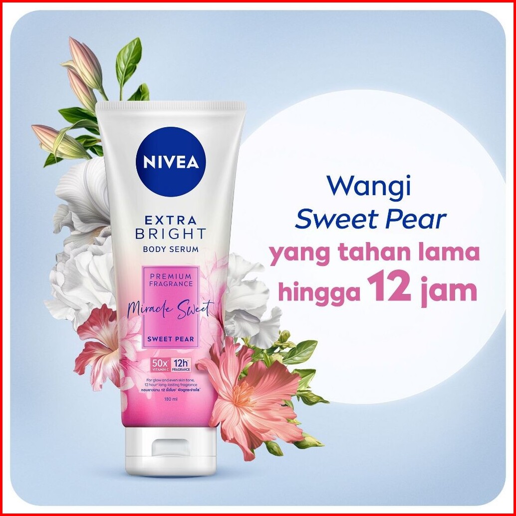Paket Hemat Isi 2 Nivea Body Serum Extra Bright Premium Fragrance Miracle Sweet 180ml - Hand Body Serum Lotion Moisturiz