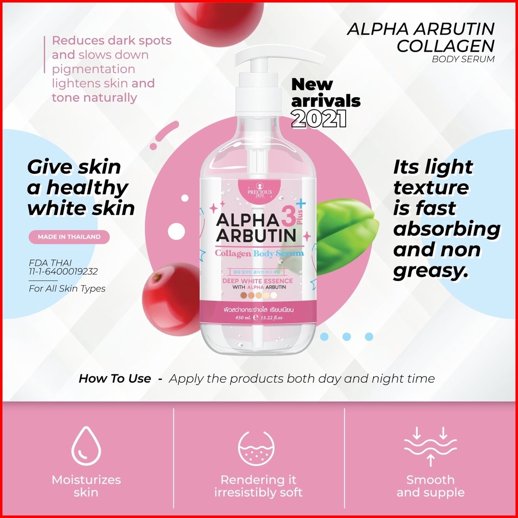 Precious Skin Thailand Alpha Arbutin 3plus 10x Whitening Booster Collagen Body Serum 500ml