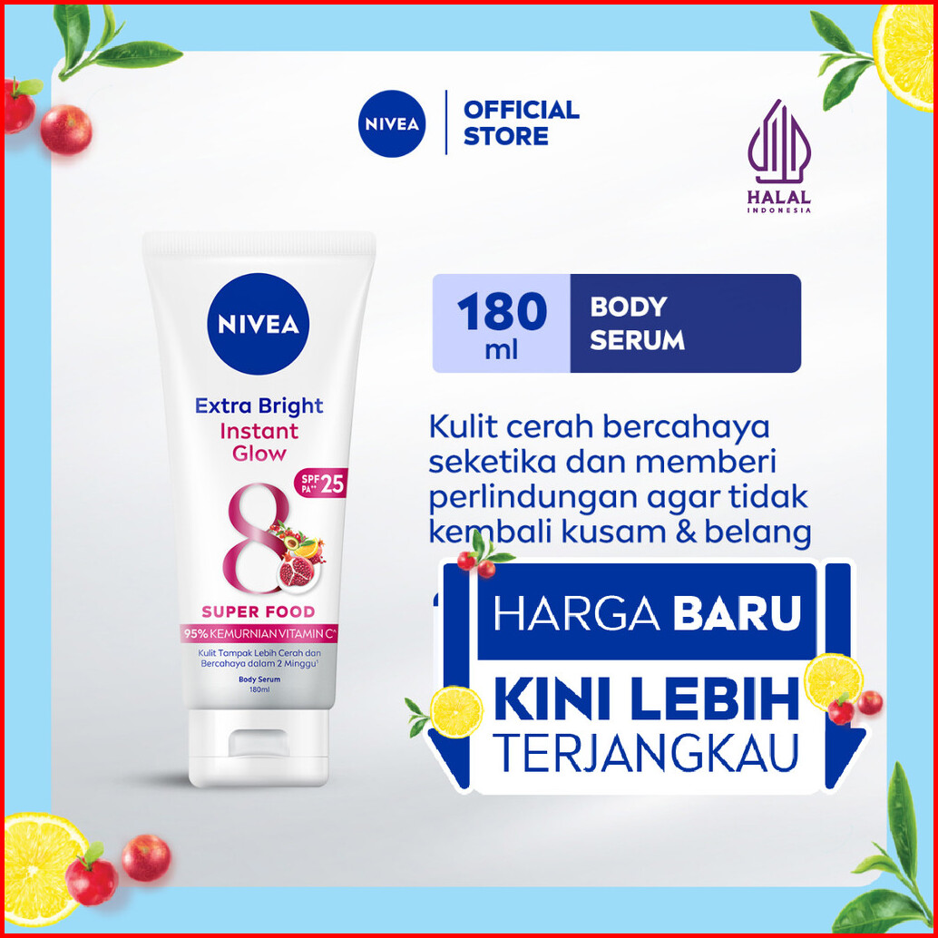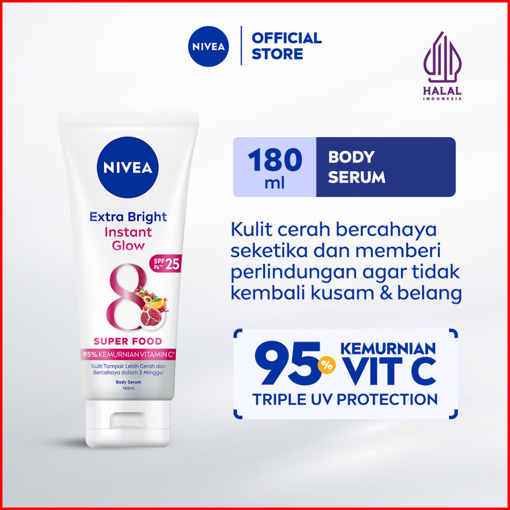Nivea Body Serum Extra Bright Glow Spf 25 180ml - Hand Body Serum Lotion Moisturizer Mencerahkan Kulit Kusam Bercahaya B
