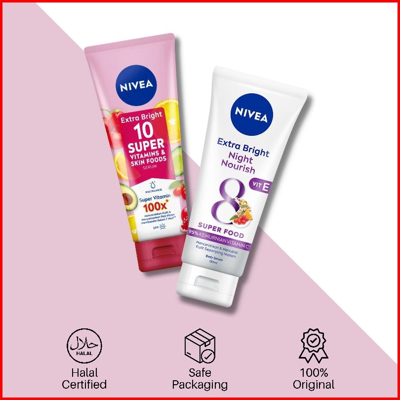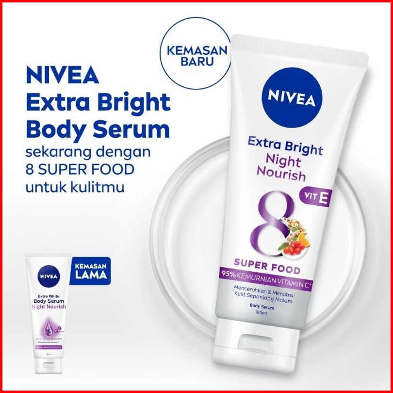 Caitlyn Beauty Bundling 2 In 1 Nivea Body Serum Extra Bright 10 Super Vitamins Skin Foods 180 Ml Nivea Night Nourish 180