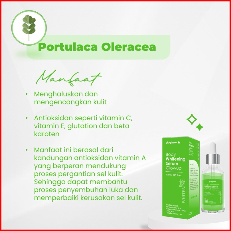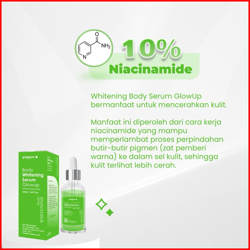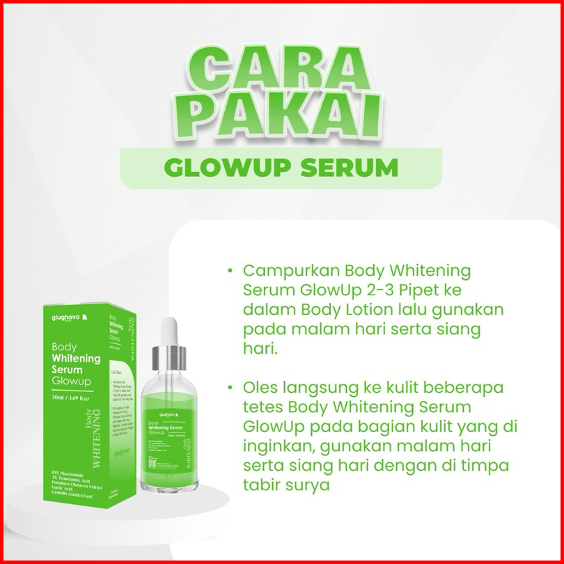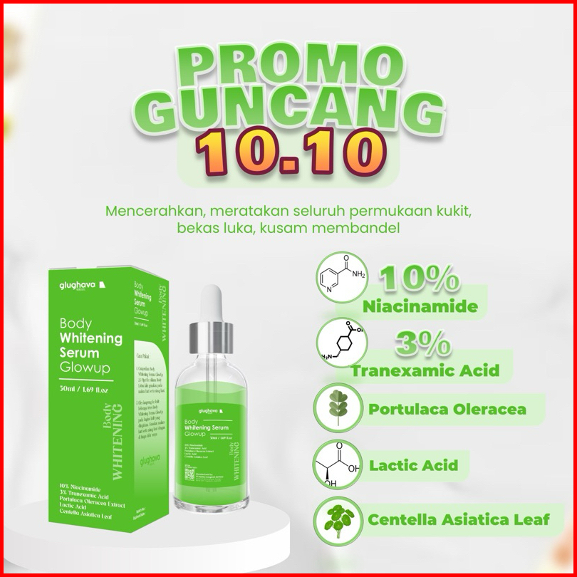 Glughava Pusat - Dpt 1 50ml - Body Whitening Serum Glowup 50ml- 10 Niacianamide 3 Tranexamic Acid- Portulaca- Centella A