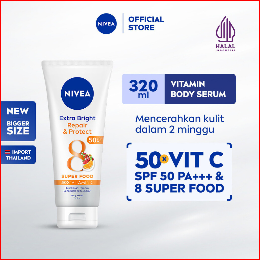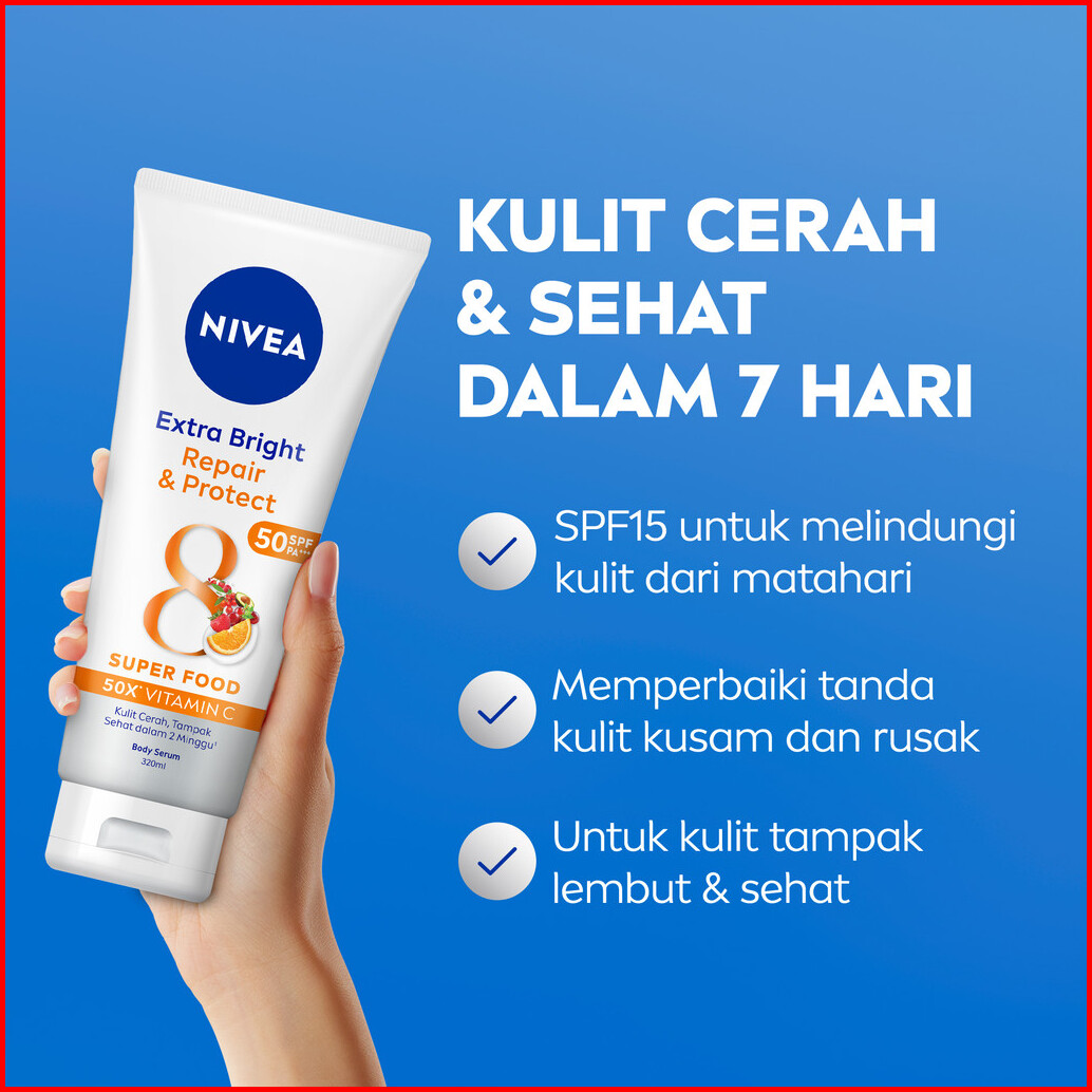 Nivea Body Serum Extra Bright Repair Protect Spf50 320ml - Hand Body Serum Lotion Moisturizer Mencerahkan Kulit Kusam Ba