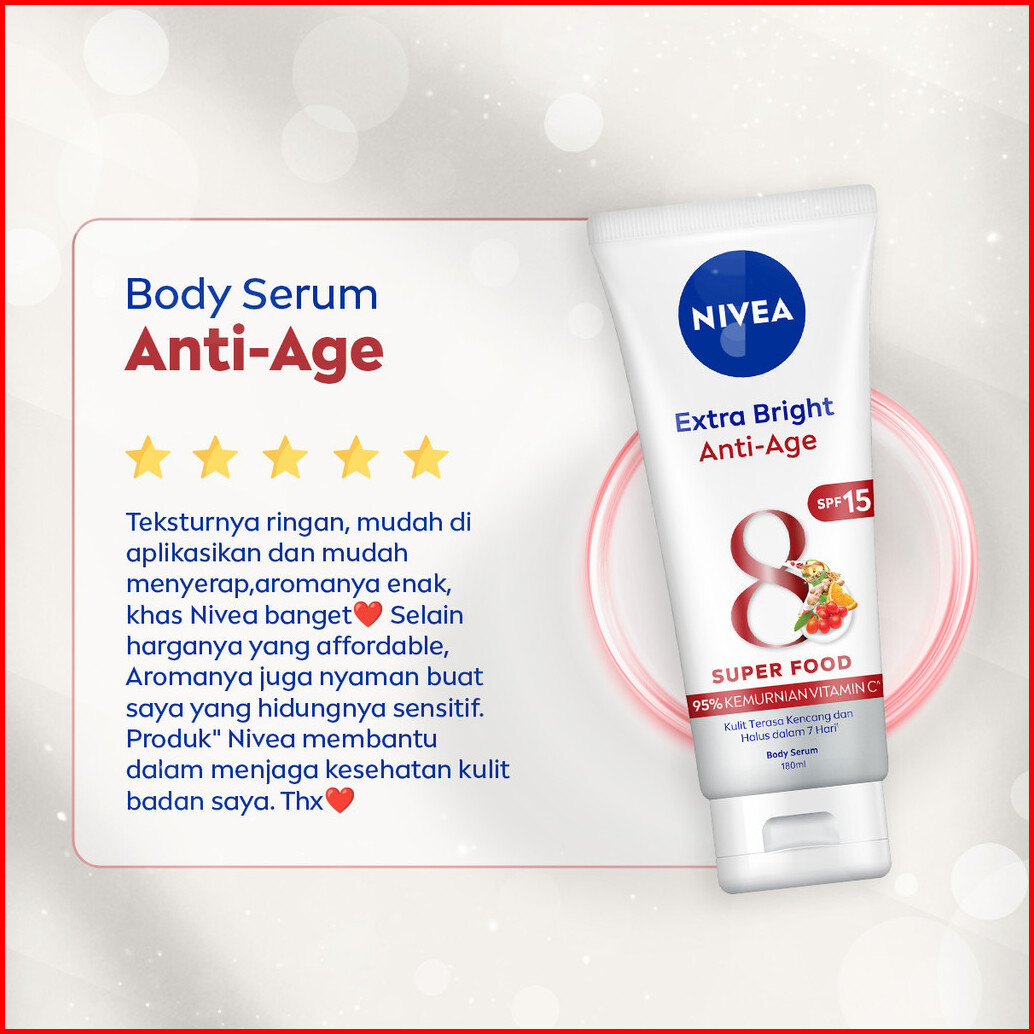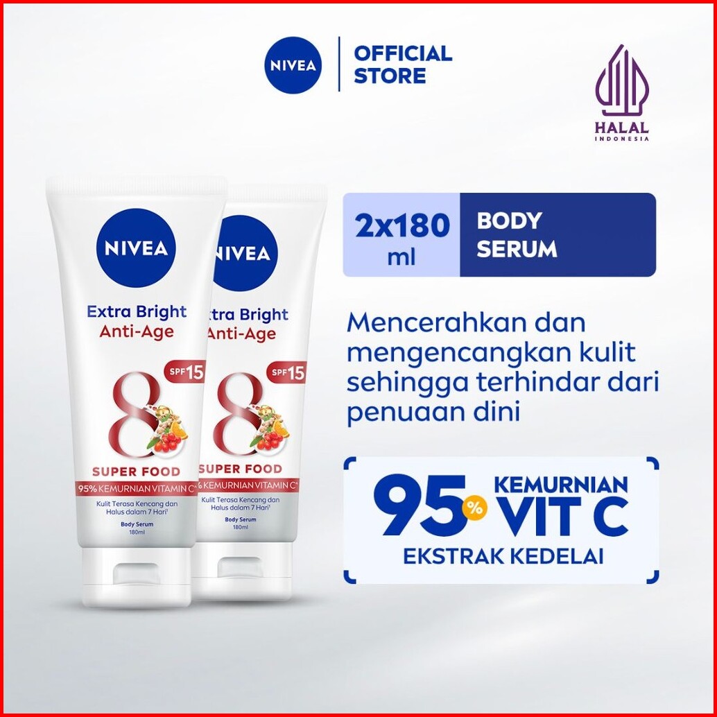 Paket Hemat Isi 2 Nivea Body Serum Extra Bright Anti Age Spf 15 180ml - Hand Body Serum Moisturizer Mencerahkan Kulit Ha