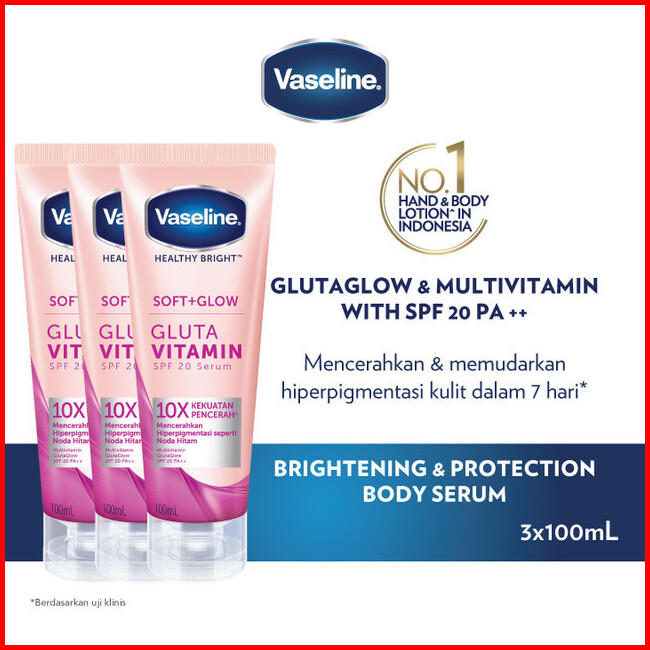 Vaseline Soft Glow Gluta Vitamin Spf 20 Body Serum With Niacinamide 100ml X3