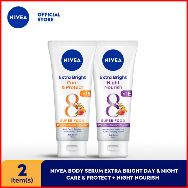 Nivea Body Serum Extra Bright Day Night - Care Protect Spf15 180ml Night Nourish Vit E 180ml