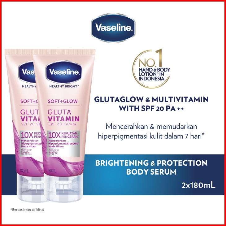 Vaseline Soft Glow Gluta Vitamin Spf 20 Body Serum Niacinamide 180ml X2
