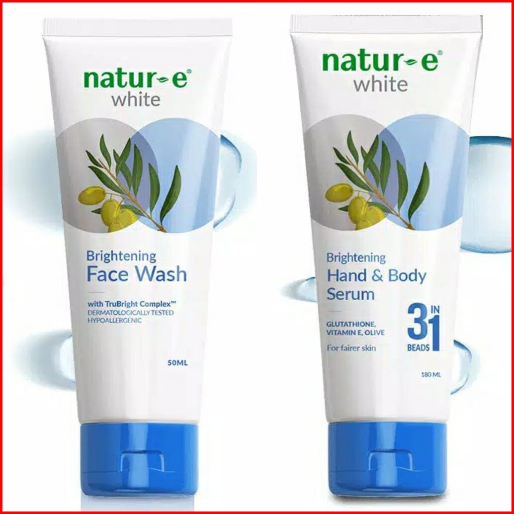 Natur-e White Bright Glow Facial Wash Serum Face Wash 50ml Hand Body Serum 180ml