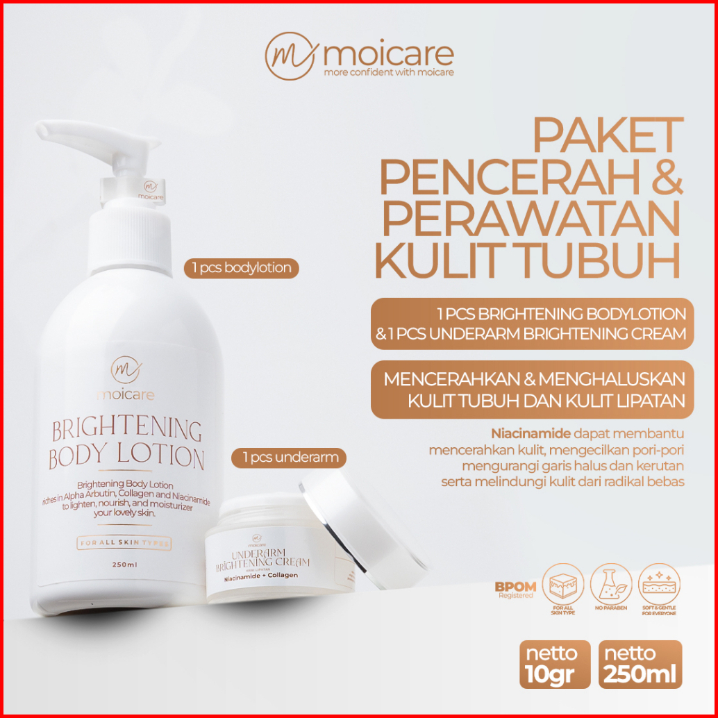 Moicare 2 Paket Pencerah Underarm Cream Whitening Bodylotion Brightening Serum Body Care Paket Hemat Moicare