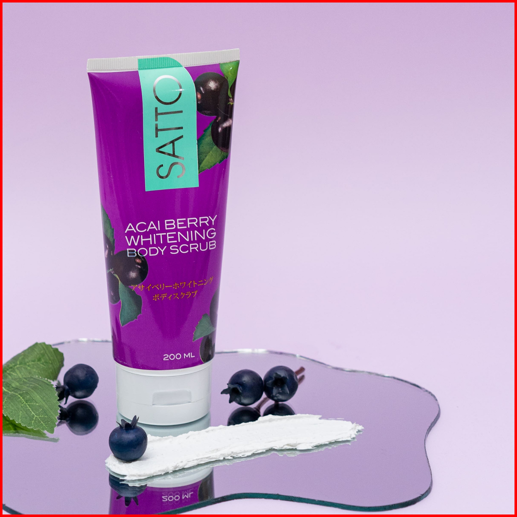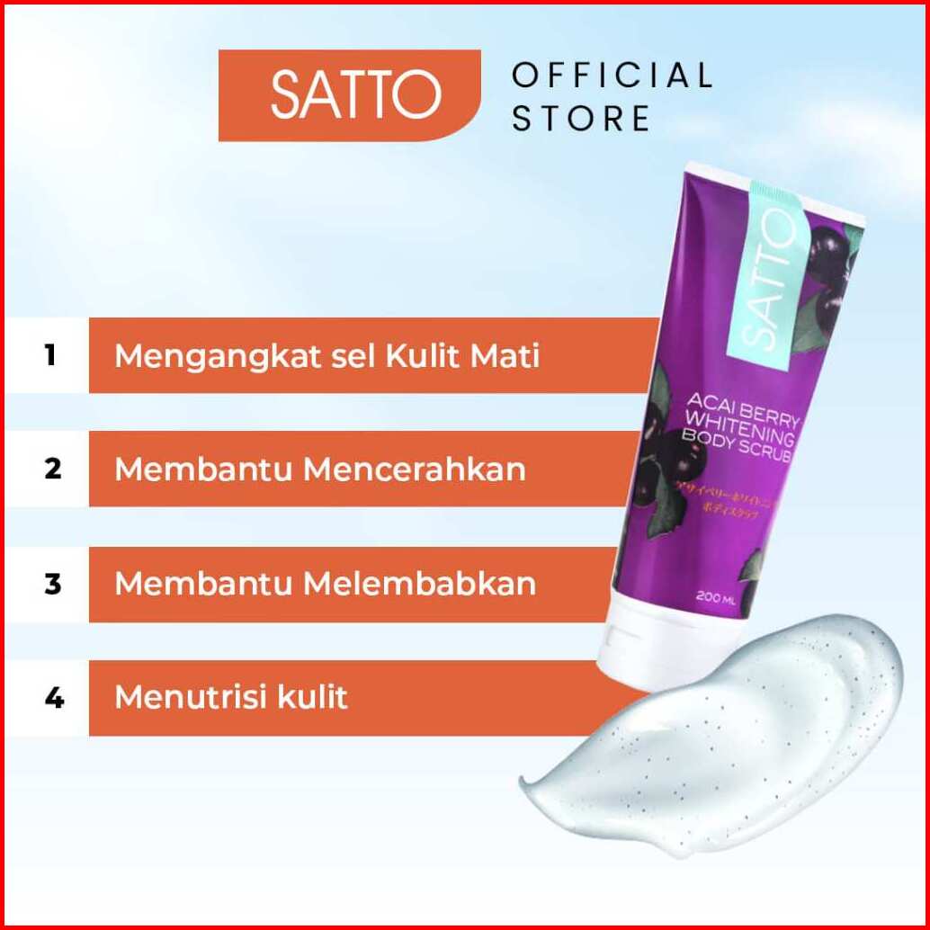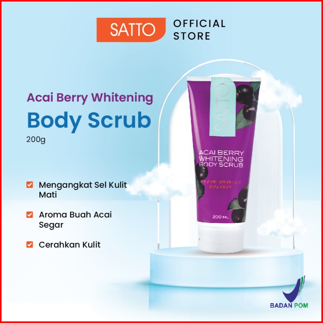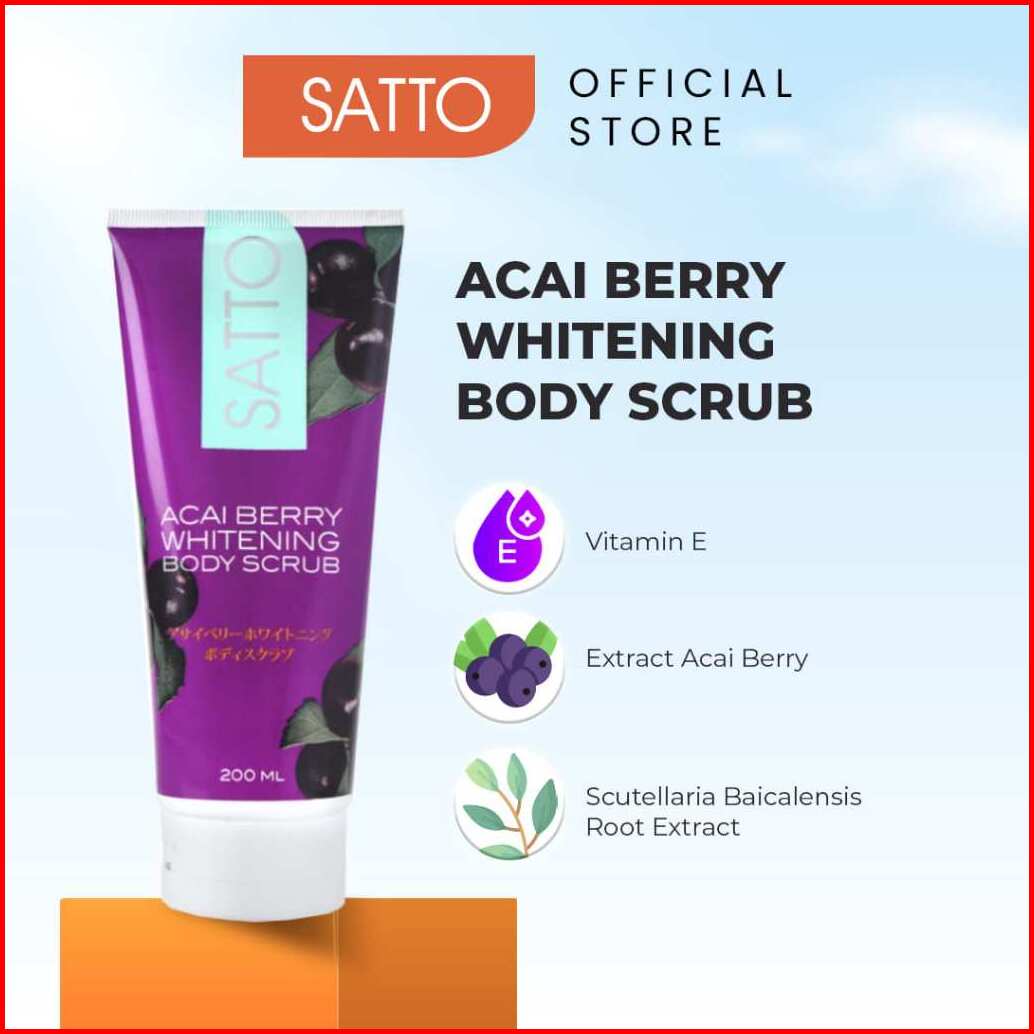 Satto Body Scrub Brightening Dengan Acai Berry 200g Kulit Halus Cerah Wangi Tahan Lama