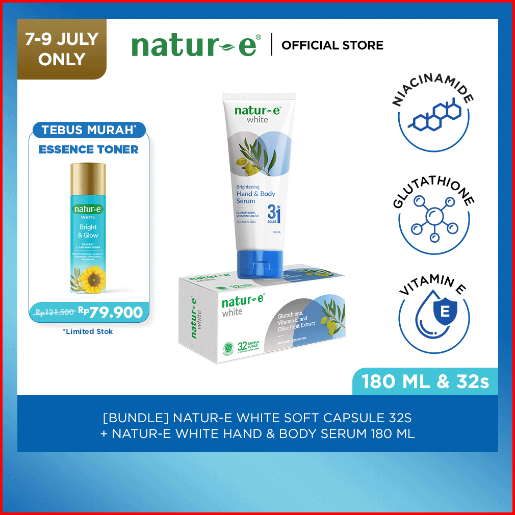 Natur-e Paket White - Soft Capsule White 32s Hand Body Serum 180ml - Paket Skincare Suplemen Kecantikan Dengan Vitamin E