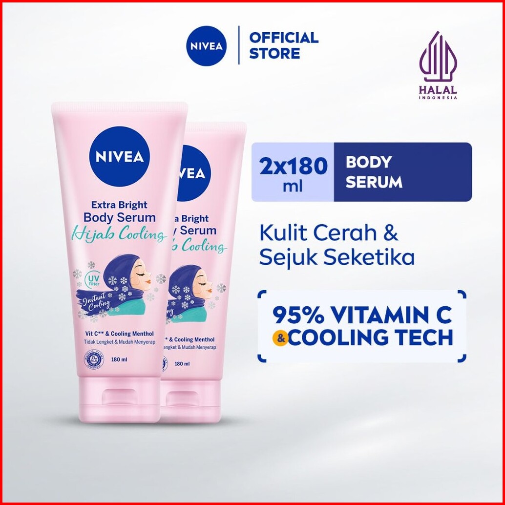 Paket Hemat Isi 2 Nivea Body Serum Extra Bright Hijab Cooling 180ml - Hand Body Serum Lotion Moisturizer Mencerahkan Kul