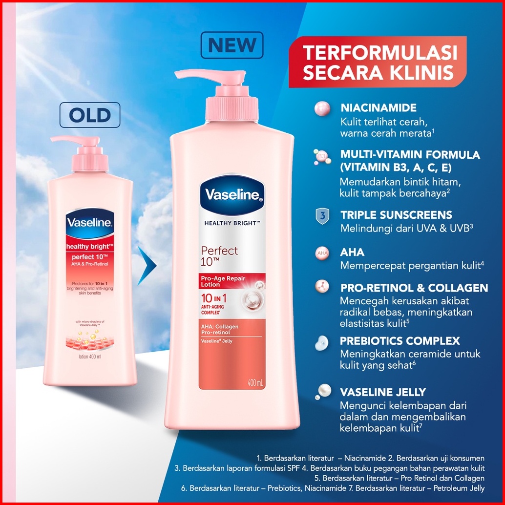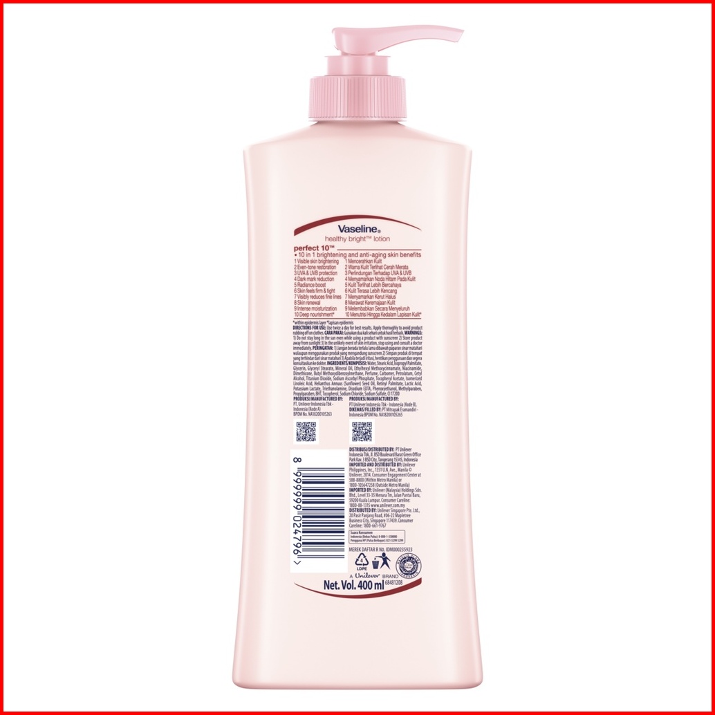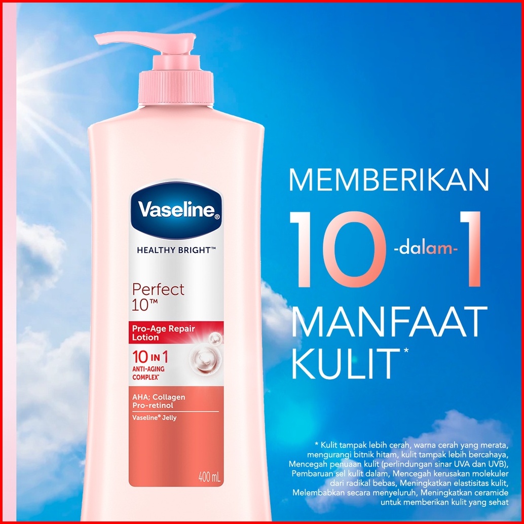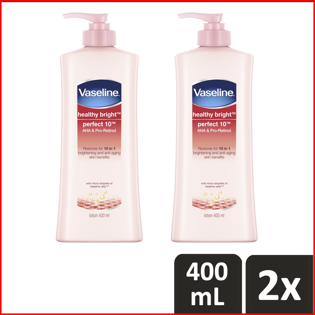 Vaseline Healthy Bright Body Lotion Perawatan Kulit Perfect10 Aha Retinol 400ml 1pcs X2