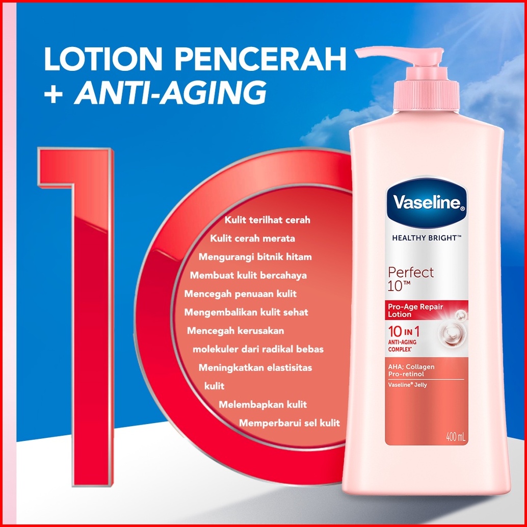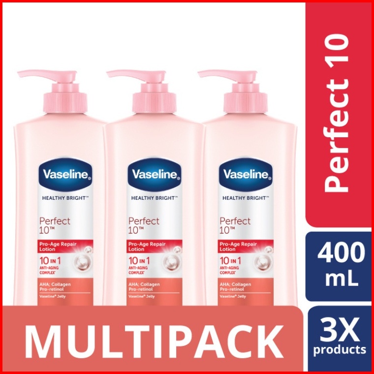 Vaseline Healthy Bright Body Lotion Perawatan Kulit Perfect10 Aha Retinol 400ml 1pcs X3