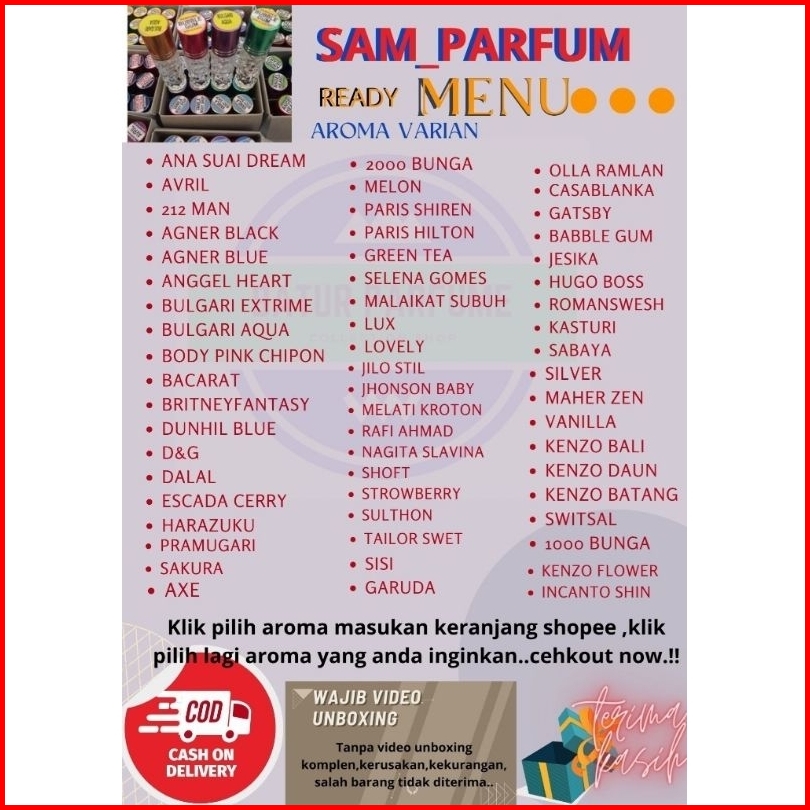 Parfum Roll On 7ml 1 Box Isi 30 Pcs Free Box Varian Random Unisex