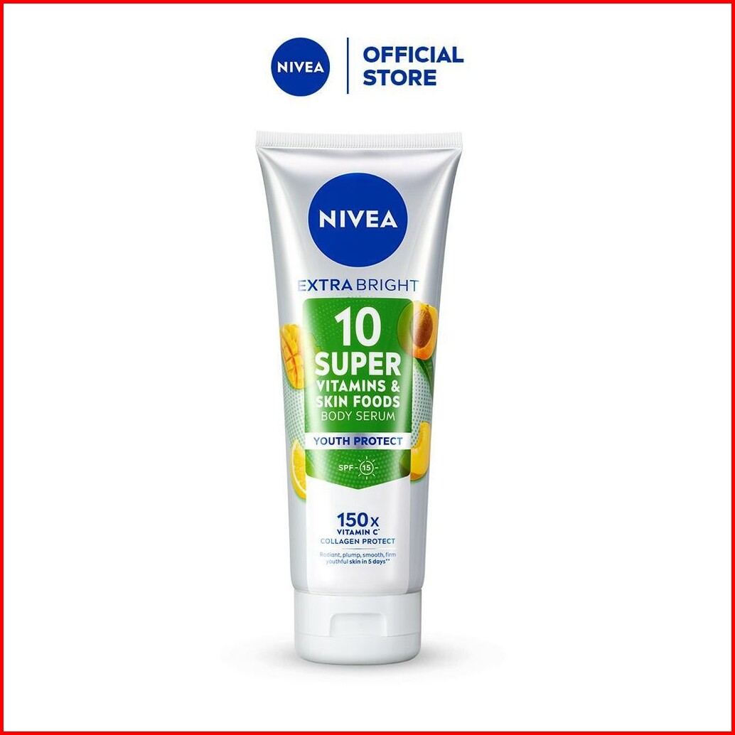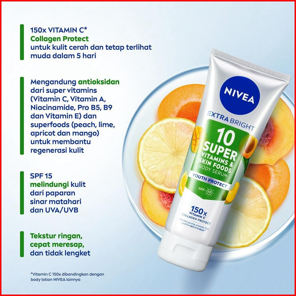 Nivea Body Serum Extra Bright 10 Super Vitamins Youth Protect Spf15 180ml - Hand Body Serum Lotion Moisturizer Mencerahk
