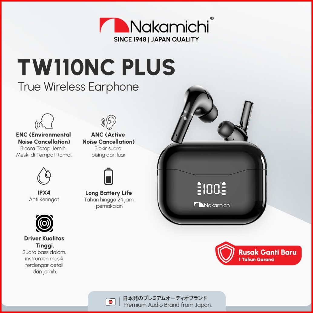Nakamichi Tw110nc Plus Anc Earphone Full Bass Earbuds Bluetooth In Ear