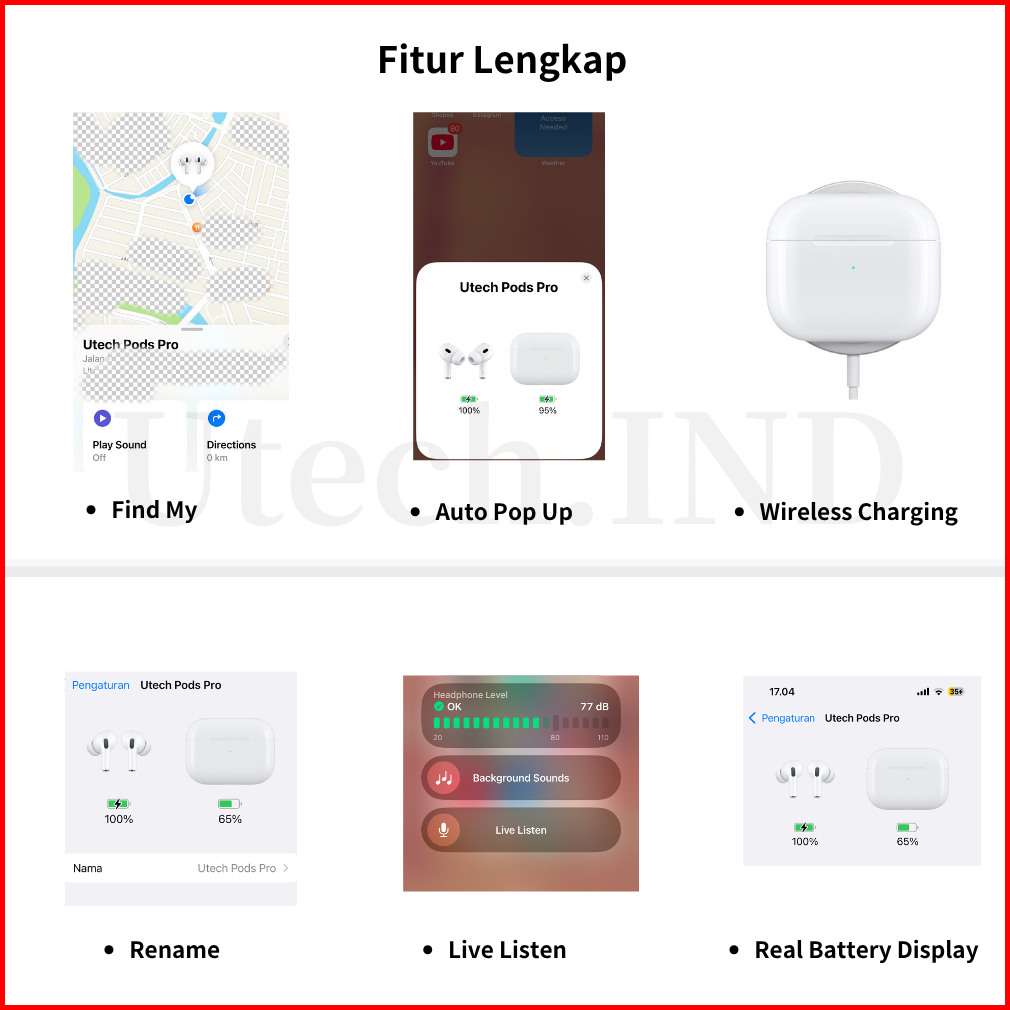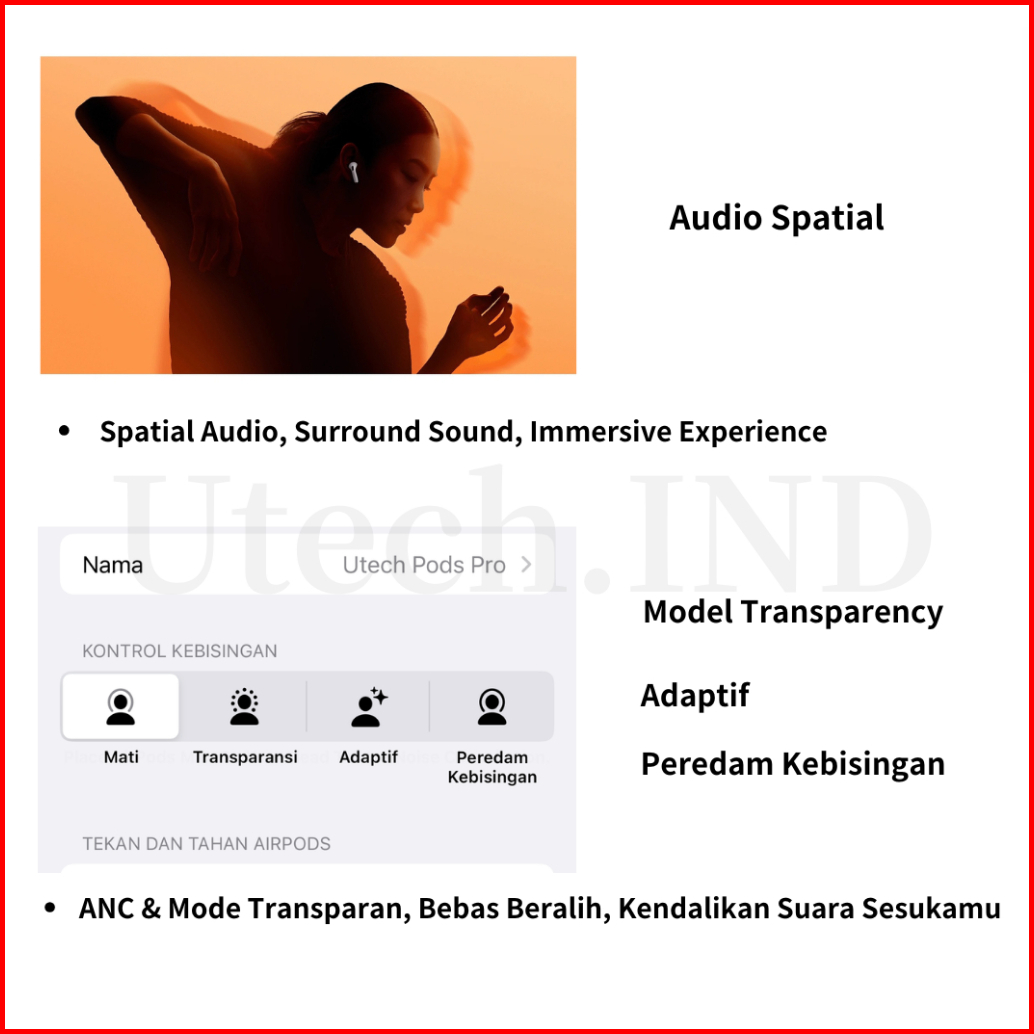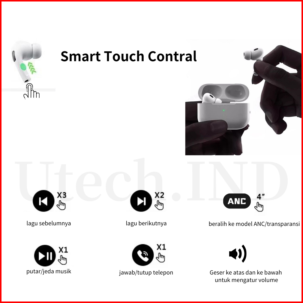 Utech Tws Pods Pro 2 Anc Active Headset Bluetooth Headset Iphone Headset Gaming Free Premium Silicone Softcase With Hook