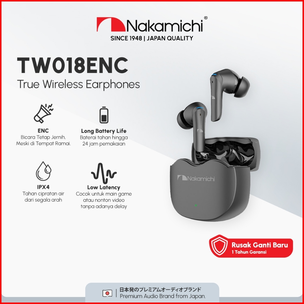 Nakamichi Tw018 Enc Tws Earphone Full Bass Earbuds Bluetooth Ipx4 Anti Keringat