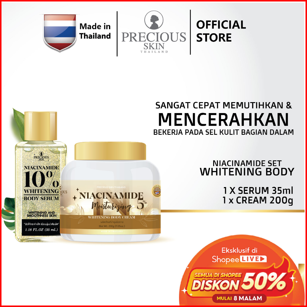 Precious Skin Thailand Niacinamide Set 2 In 1 Serum Booster 10 Moisturizing Whitening Cream 5