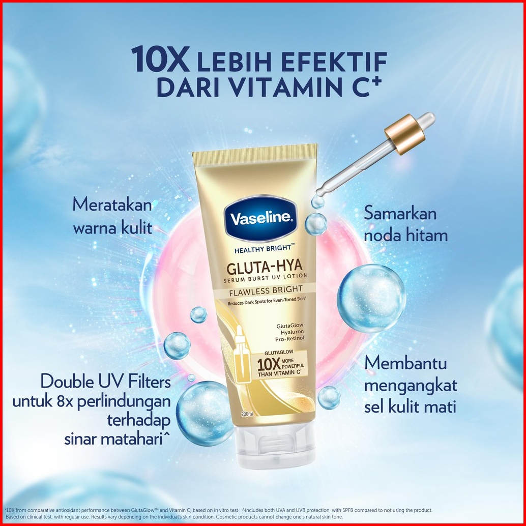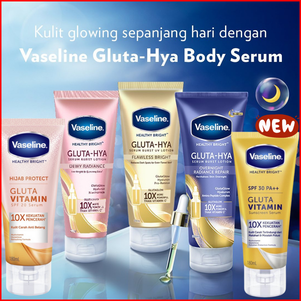 Vaseline Gluta Hyaluron Niacinamide Serum Uv Lotion Flawless Brightening Bright Dewy Radiance 200ml Overnight Radiance R