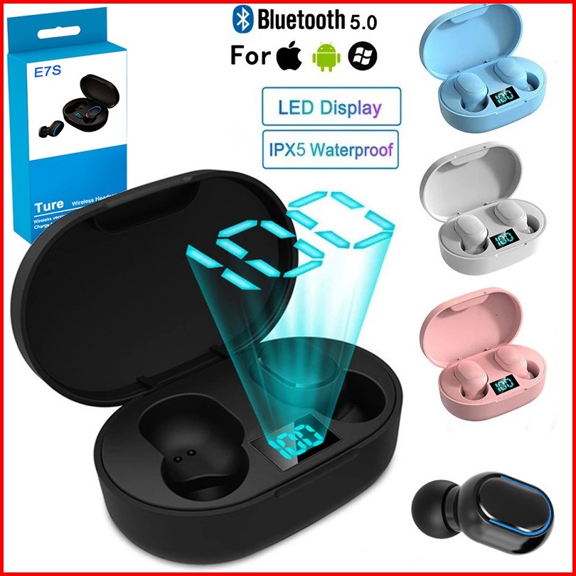 E7s Headset Bluetooth Power Bank Tws With Mic 9d Bass Stereo Handset Water Proof Earbud