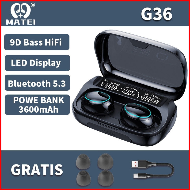 Matei Headset Bluetooth M19 Tws Wireless Earphones Bluetooth 5.1 In Ear Hifi Mini Waterproof Sports Music Earbuds With C