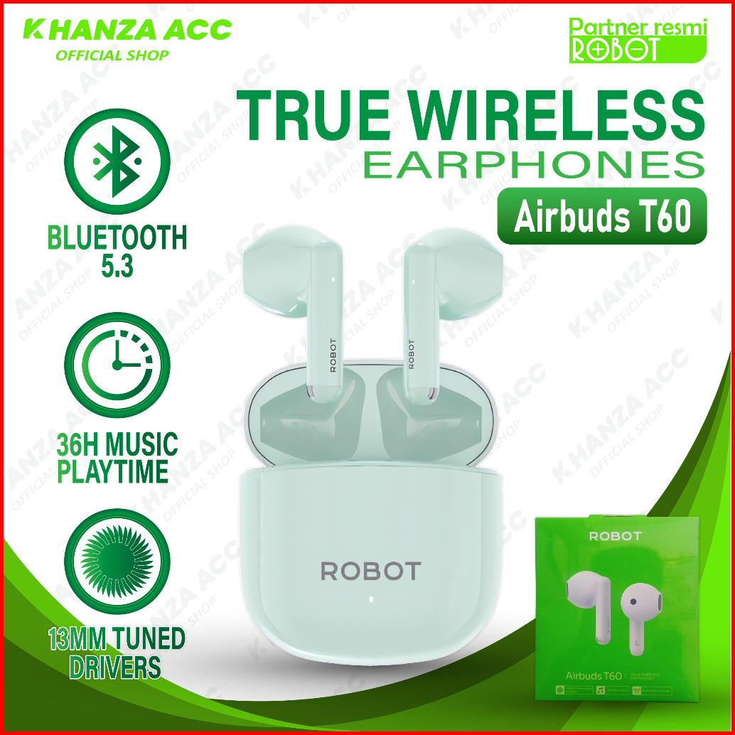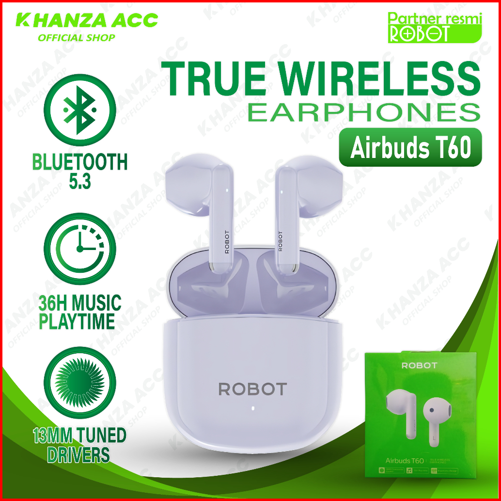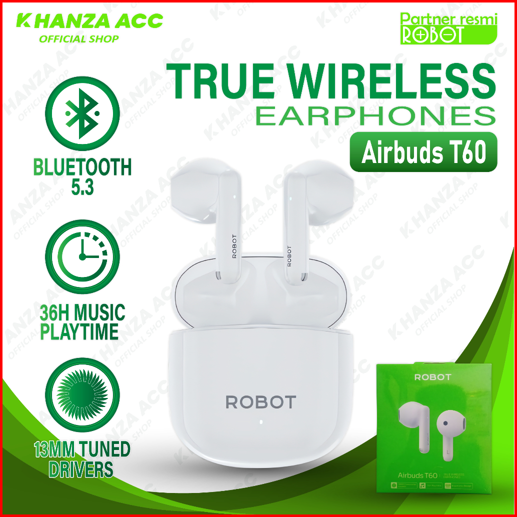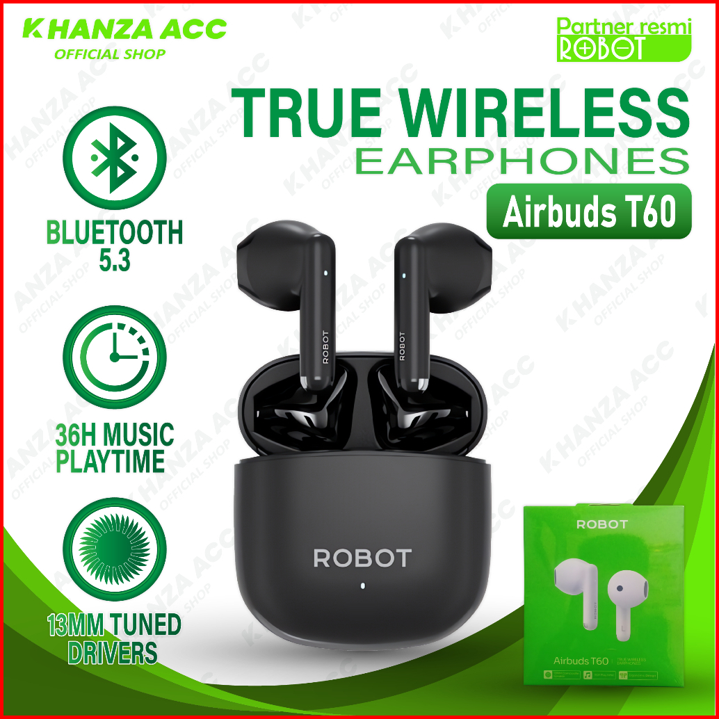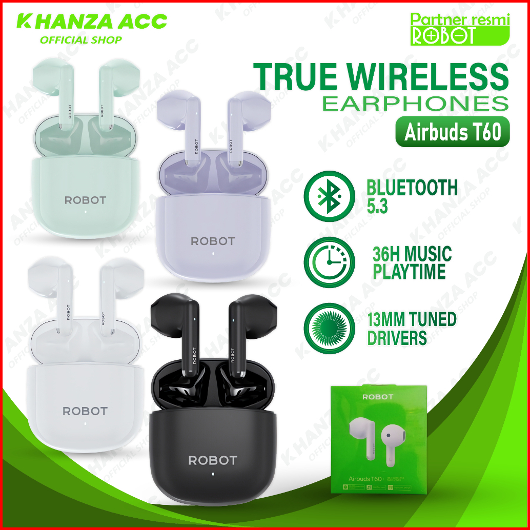 Khanzaacc Robot T60 Tws Earphone Bluetooth 5.3 Airbuds