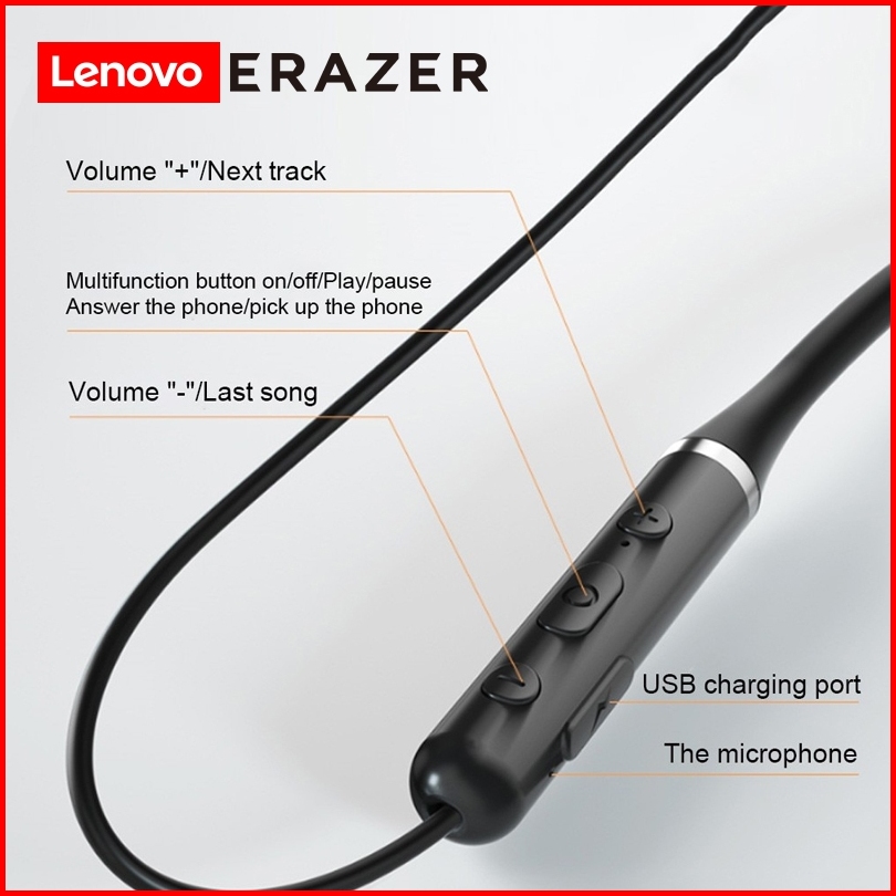 Lenovo Erazer Xe05max Neckband Sport Headset Bluetooth Bass Stereo Mic Ipx5 Waterproof Headphone