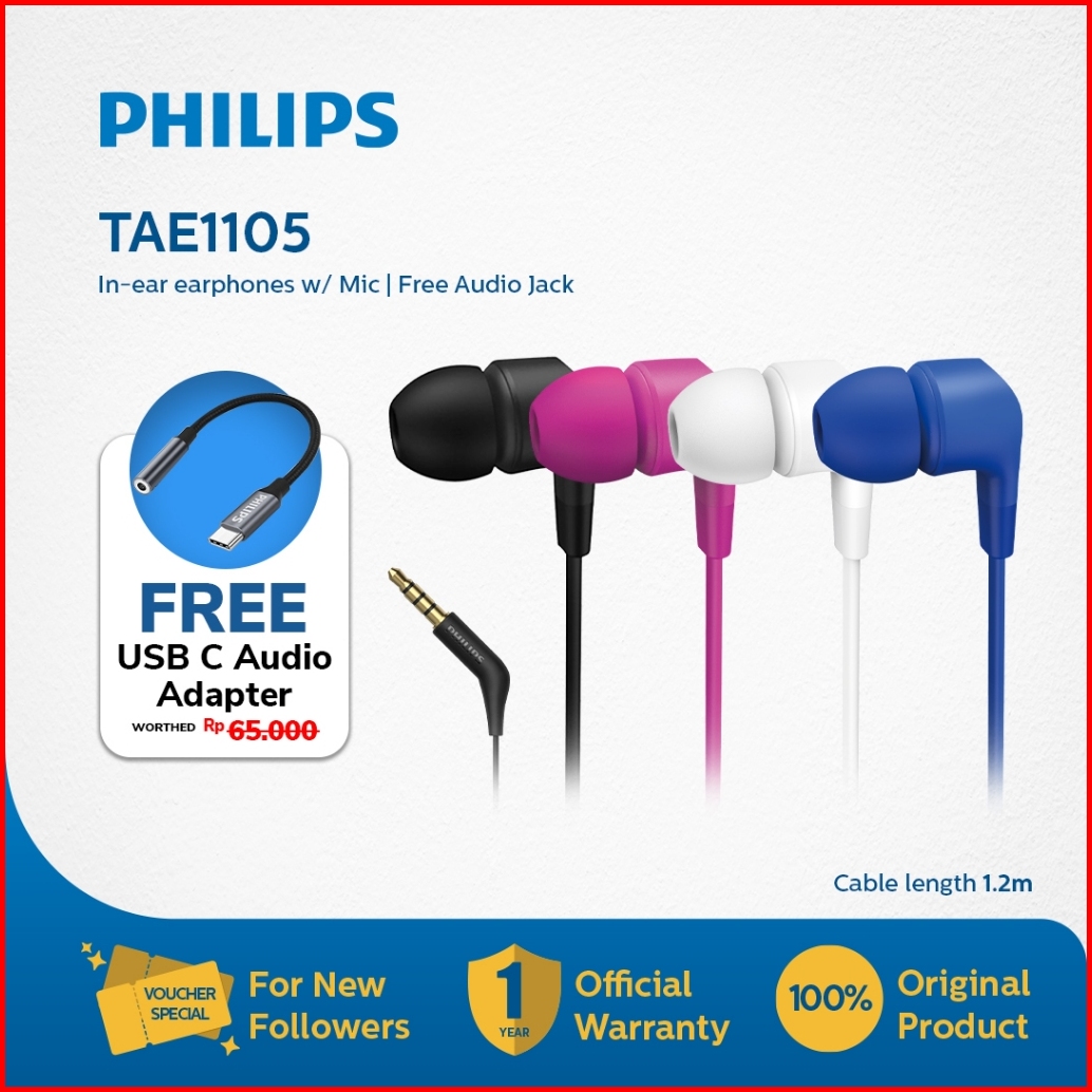 Philips Tae1105 In-ear Wired Headphones Earphone Tae 1105