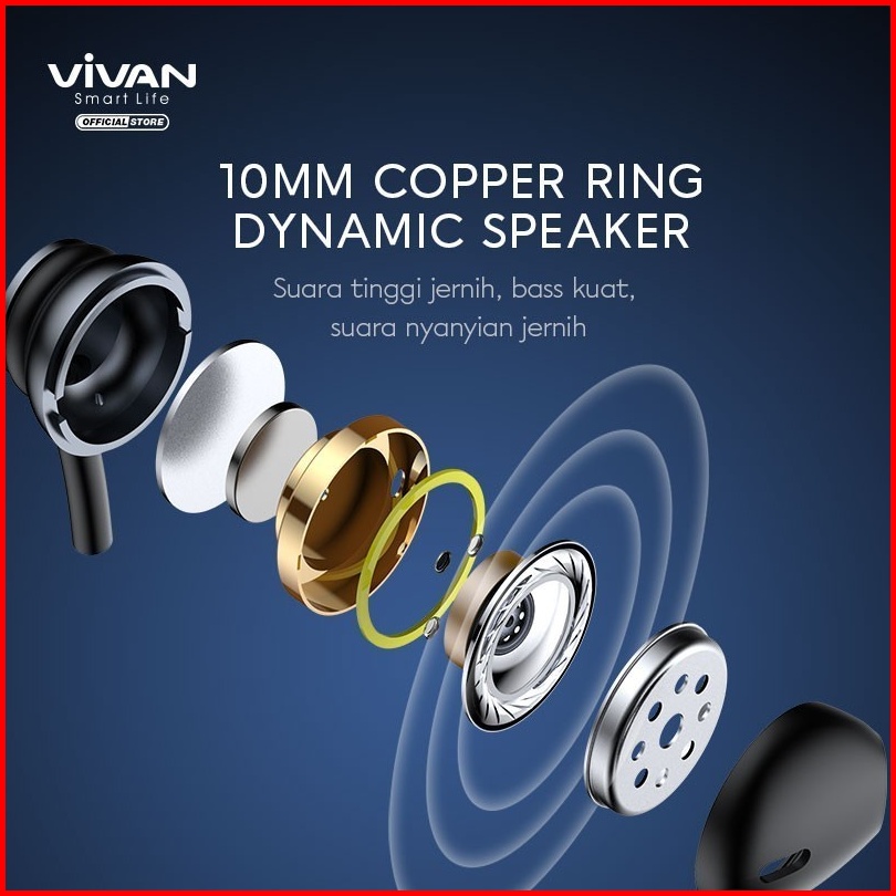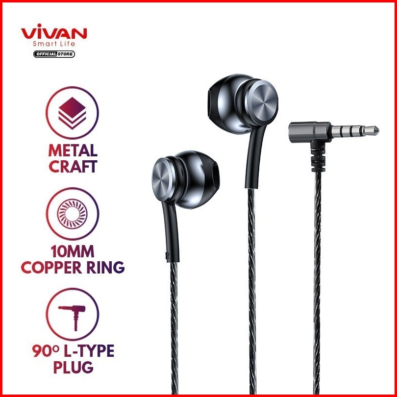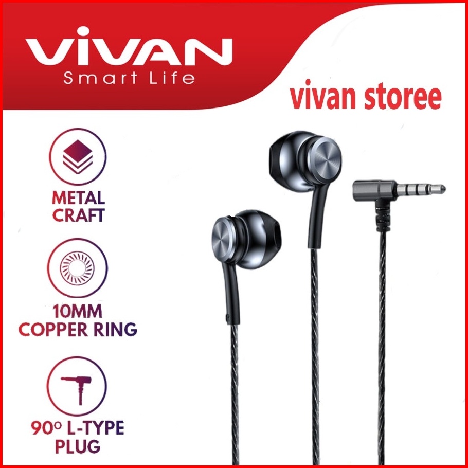 Vivan Headset Q12 Wired Earphone Metal Deep Bass Mic Konektor L 90 Audio Quality Garansi Original
