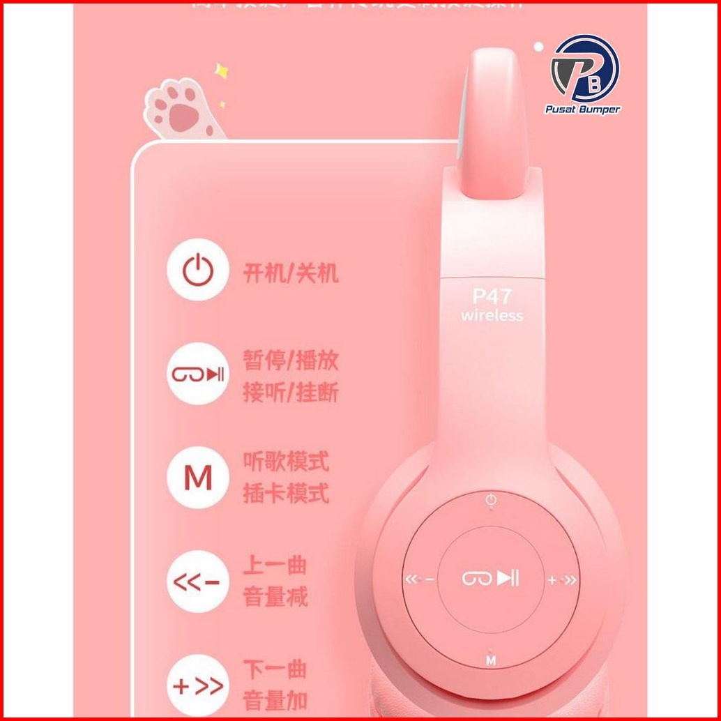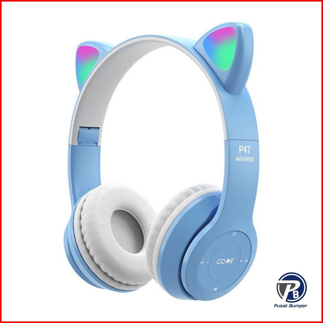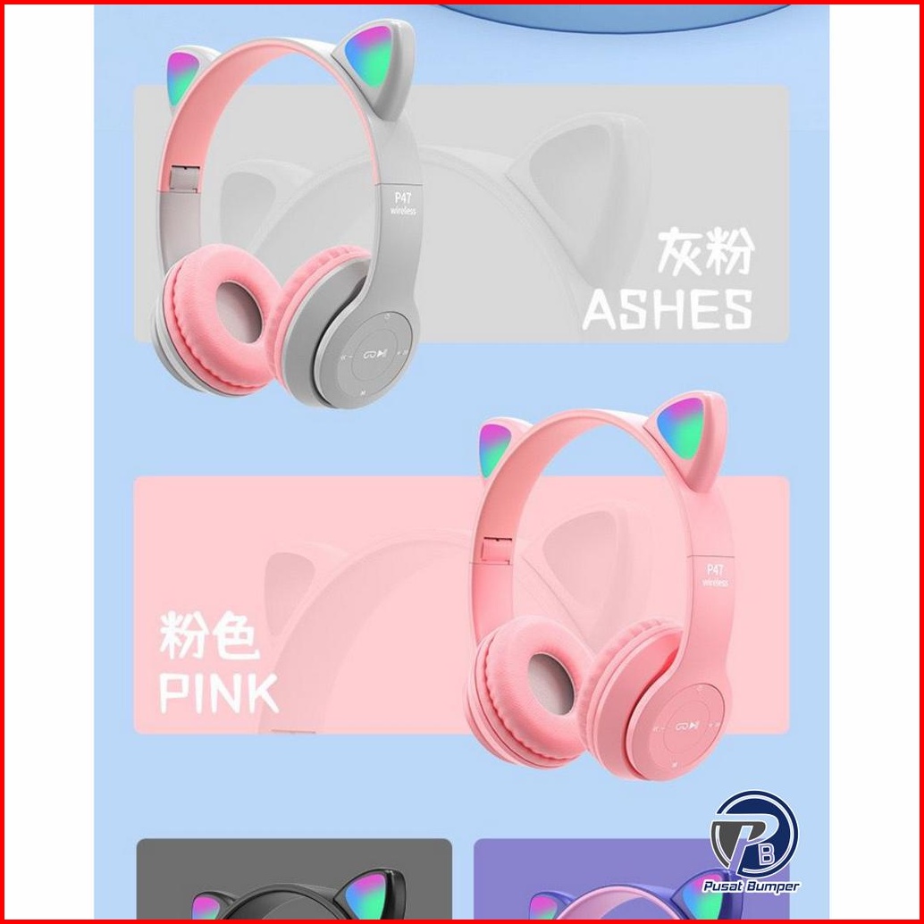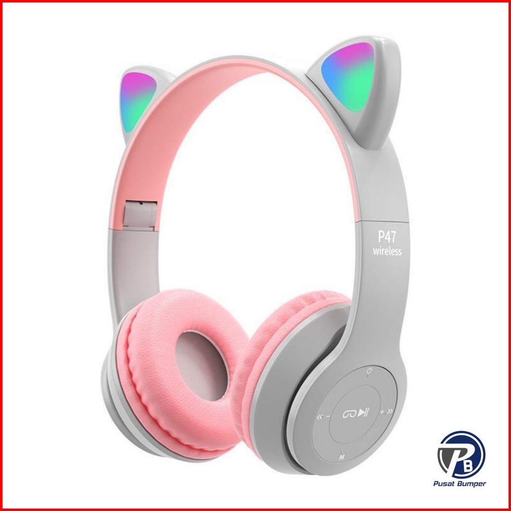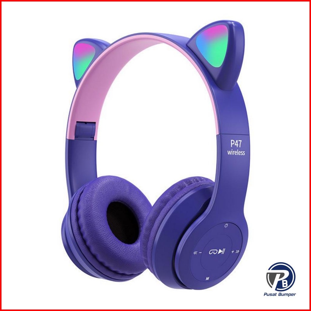 Cat Ears Headset Headphone Hf Bando Telinga Kucing P47m Led Bando Bluetooth Wireles Rgb Game Headset G-p47m Led Wireless