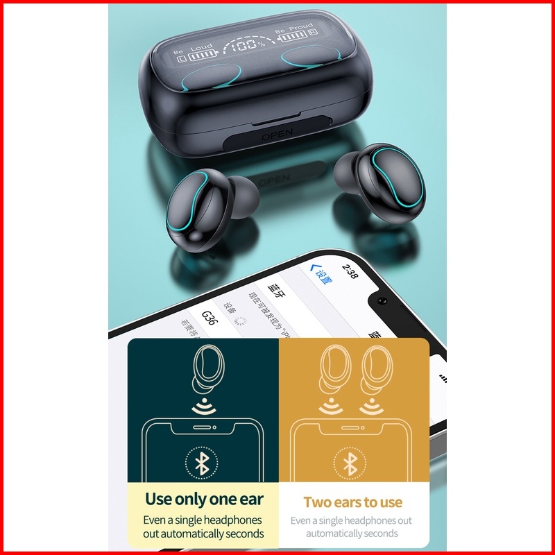 Matei Headsetbluetooth Earphone Tws Wireless G36 Earphone Led Earbud 9d Bluetooth 5.3 Dengan Mic
