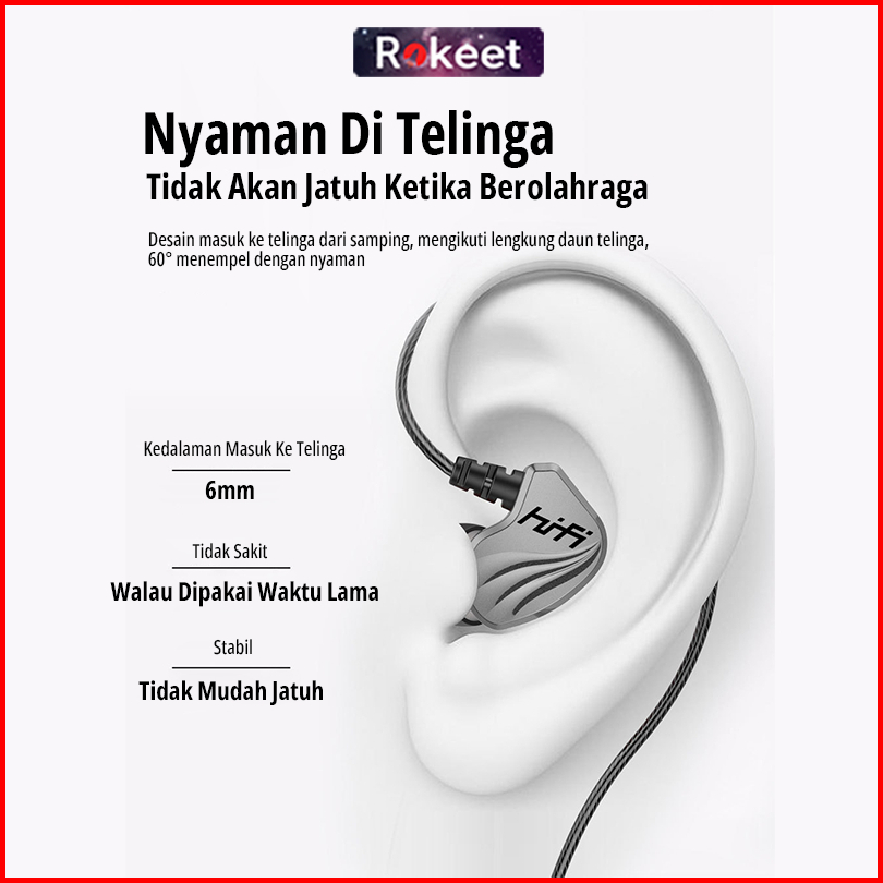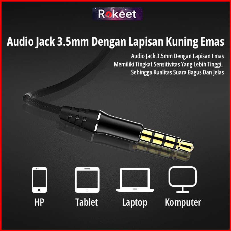 Rokeet In Earphone 9d Hifi With Mic Bass Stereo Headset Sport Gaming