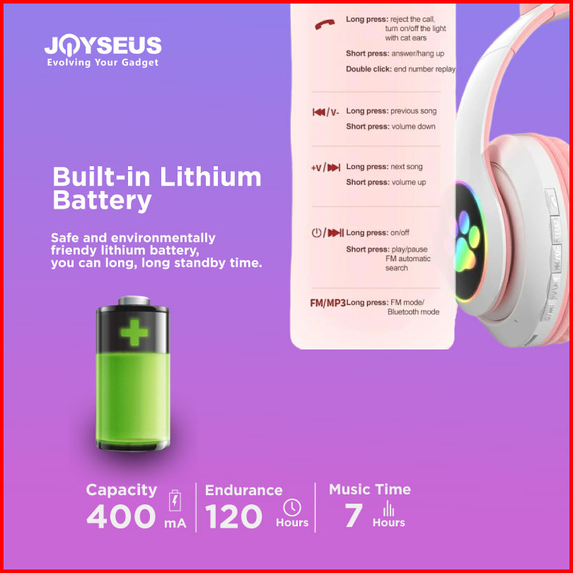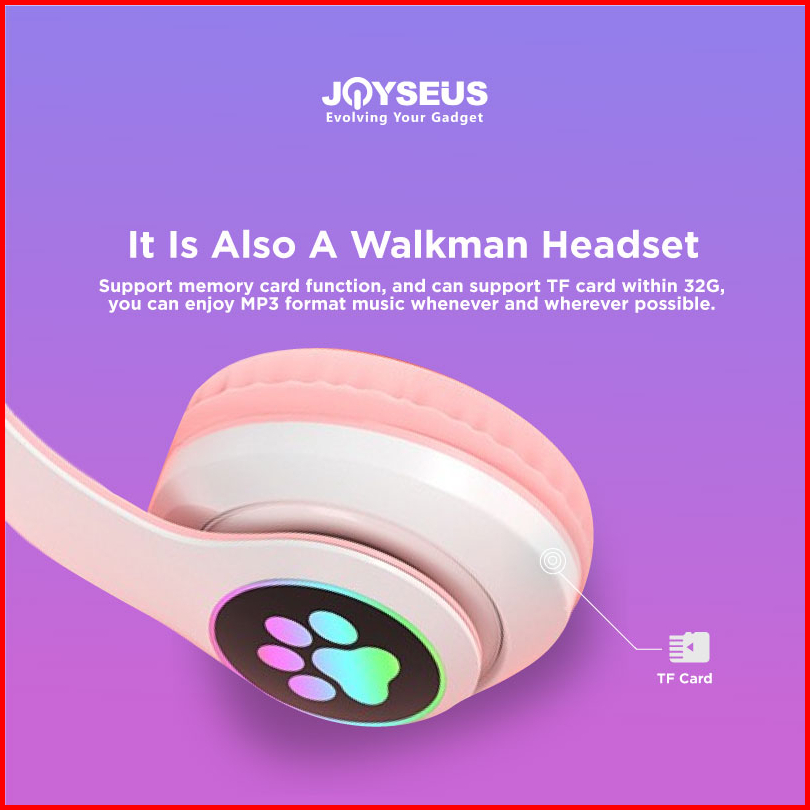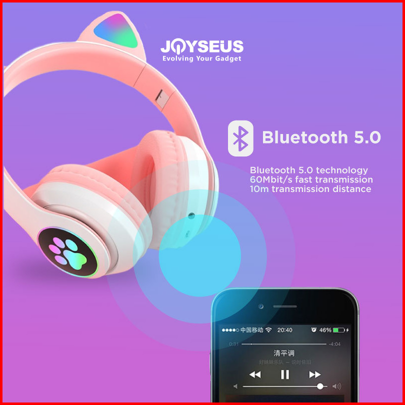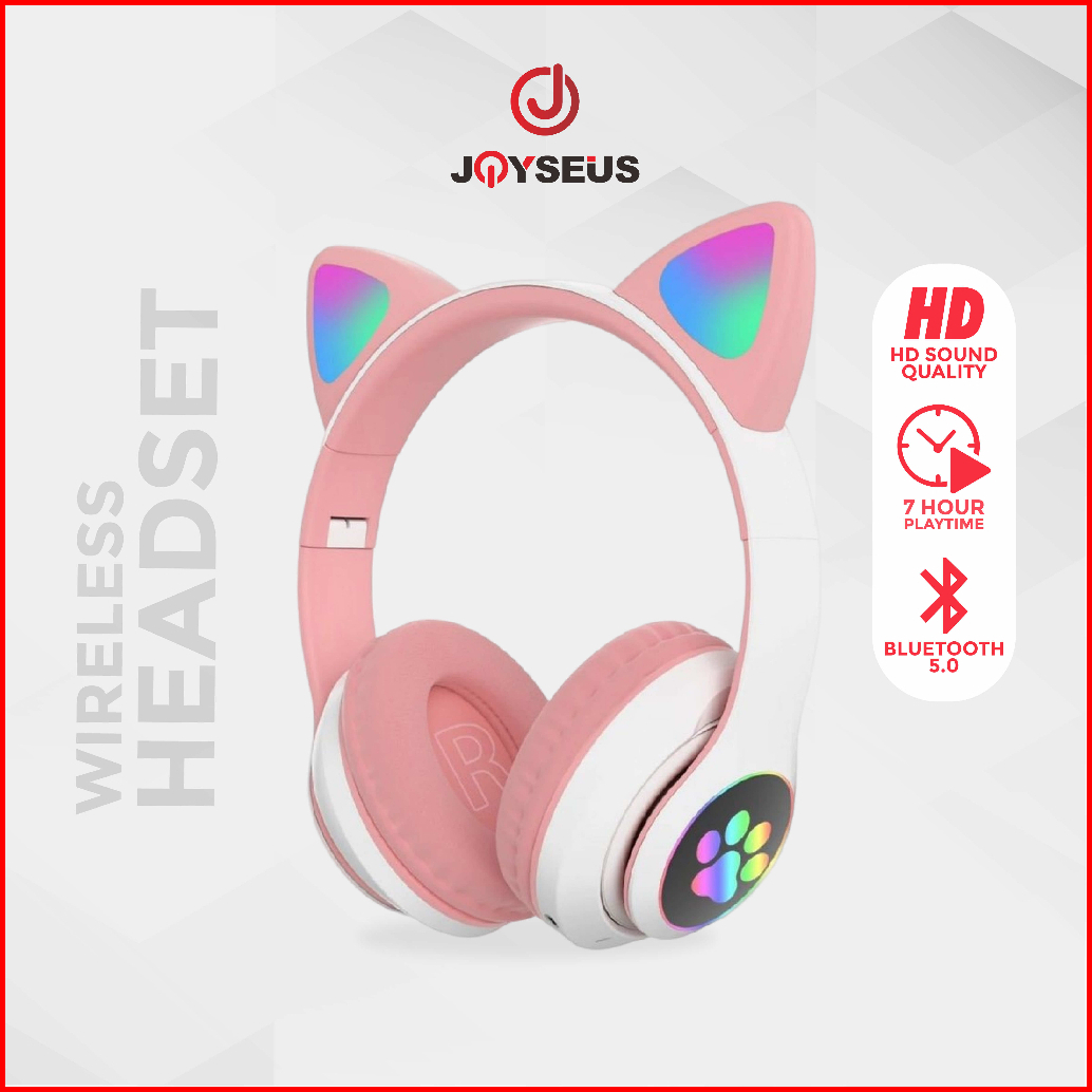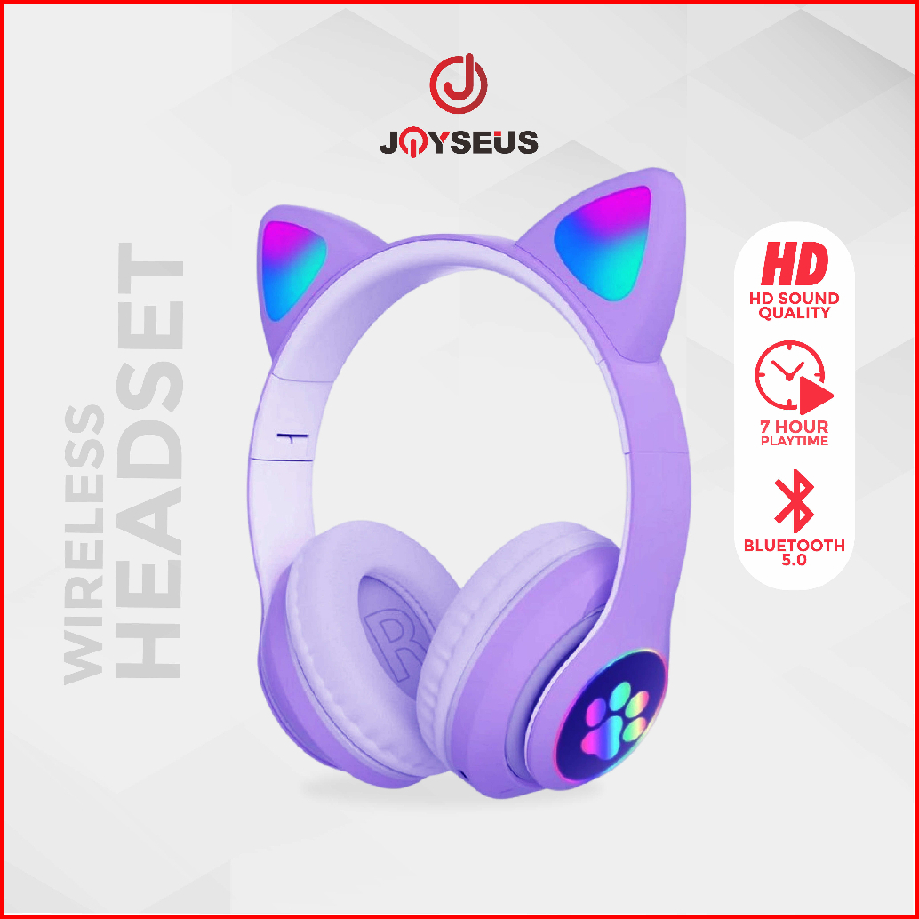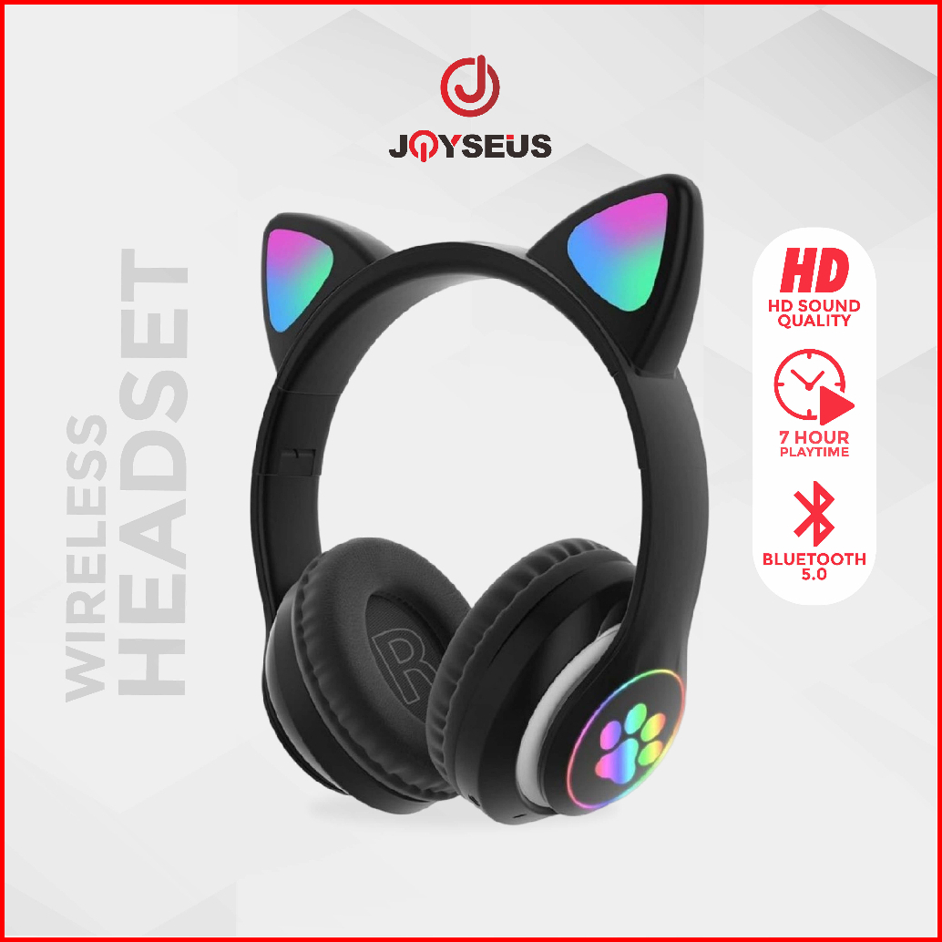 Joyseus Led Bluetooth Kucing Cat Headphone Bluetooth 5.0 Wireless Headphones With Mic Hifi Stereo