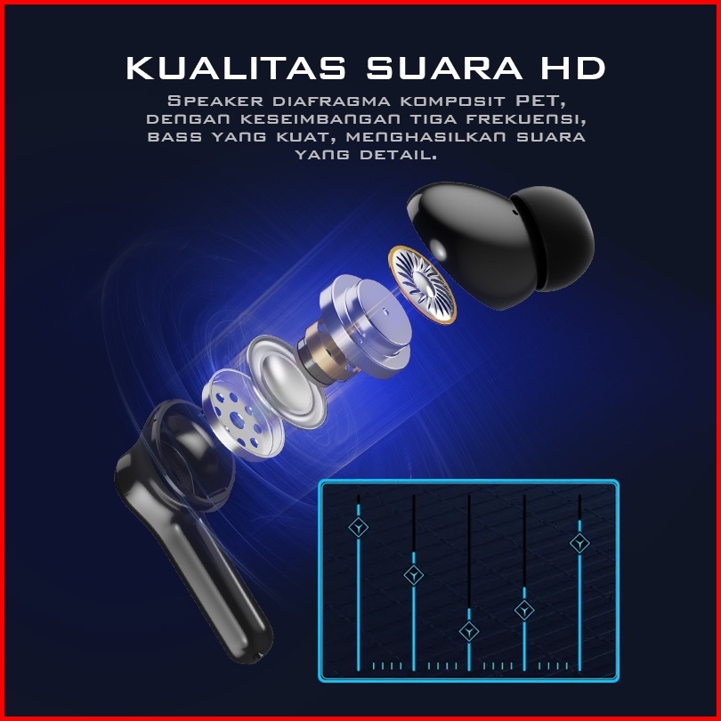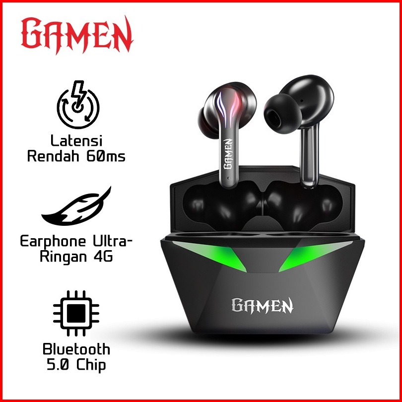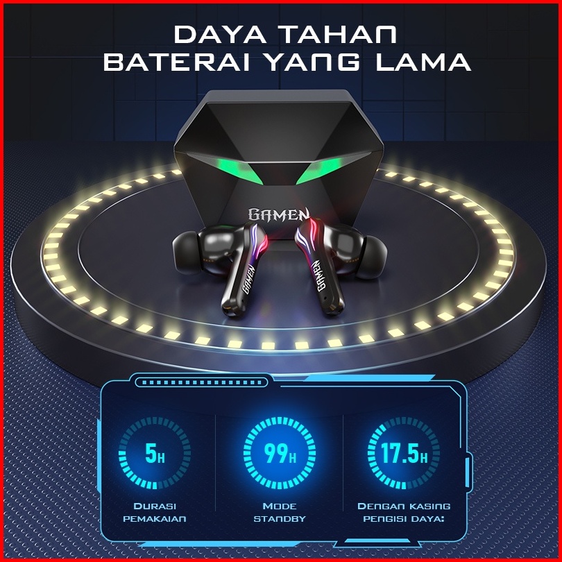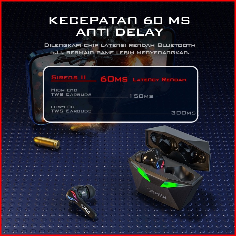 Gamen Tws Bluetooth Gaming No Delay Sirens Ii Hd Sound Design Ultra Ringan Low Latency 60 Ms Led Daya Baterai Tahan Lama