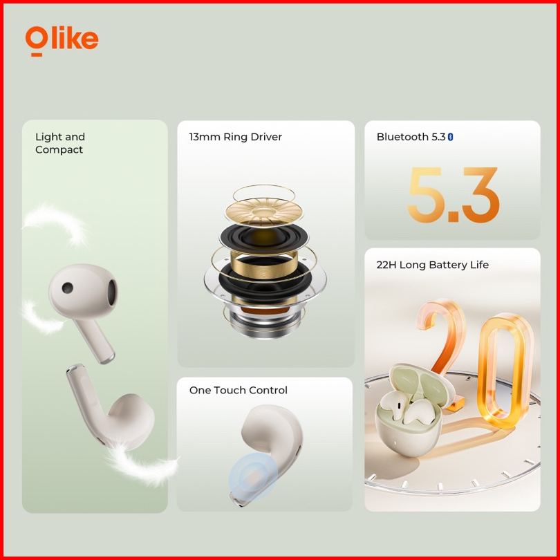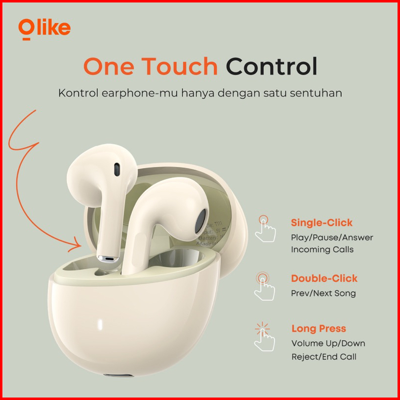 Olike Tws T111 Bluetooth Earphone Headset Bluetooth 5.3 Long Standby Time Handsfree Hifi Sound Quality - Garansi Resmi 1